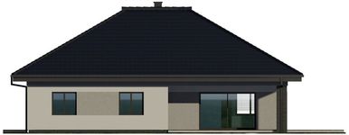 Graficzne opracowanie rzutów poglądowych widocznych na karcie projektu zostało wykonane przez Extradom.pl. Prezentowane przez Extradom.pl wizualizacje wykonane zostały przez autora projektu i należy poczytywać je jedynie za przykład i propozycję wykończenia, wizję architektoniczną autora projektu. Ostateczne wykończenie budynku może nastąpić na wiele sposobów. Szczegółowe rozwiązania zastosowane w oferowanej dokumentacji - w tym również ilość, lokalizacje i wygląd okien, drzwi, kominów - mogą w niewielkim stopniu różnić się od prezentowanej wizualizacji budynku.