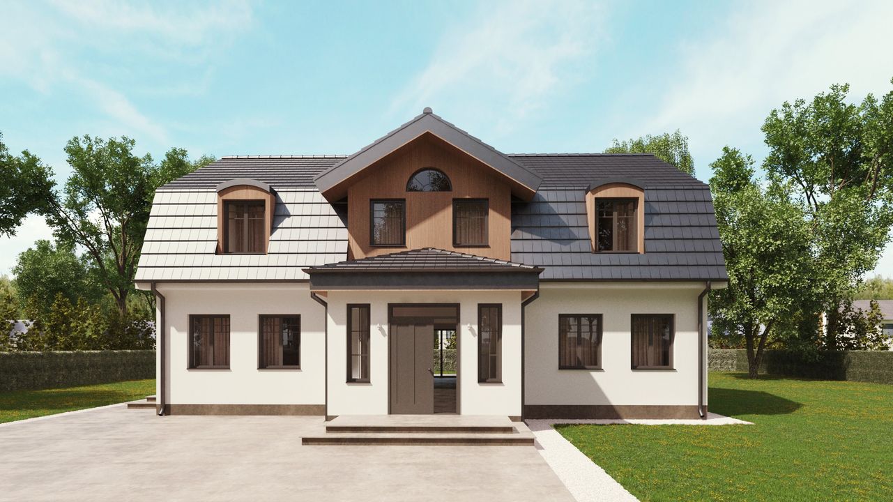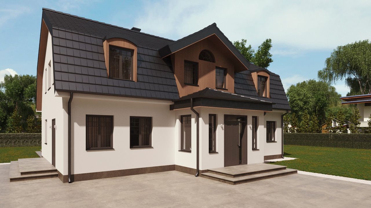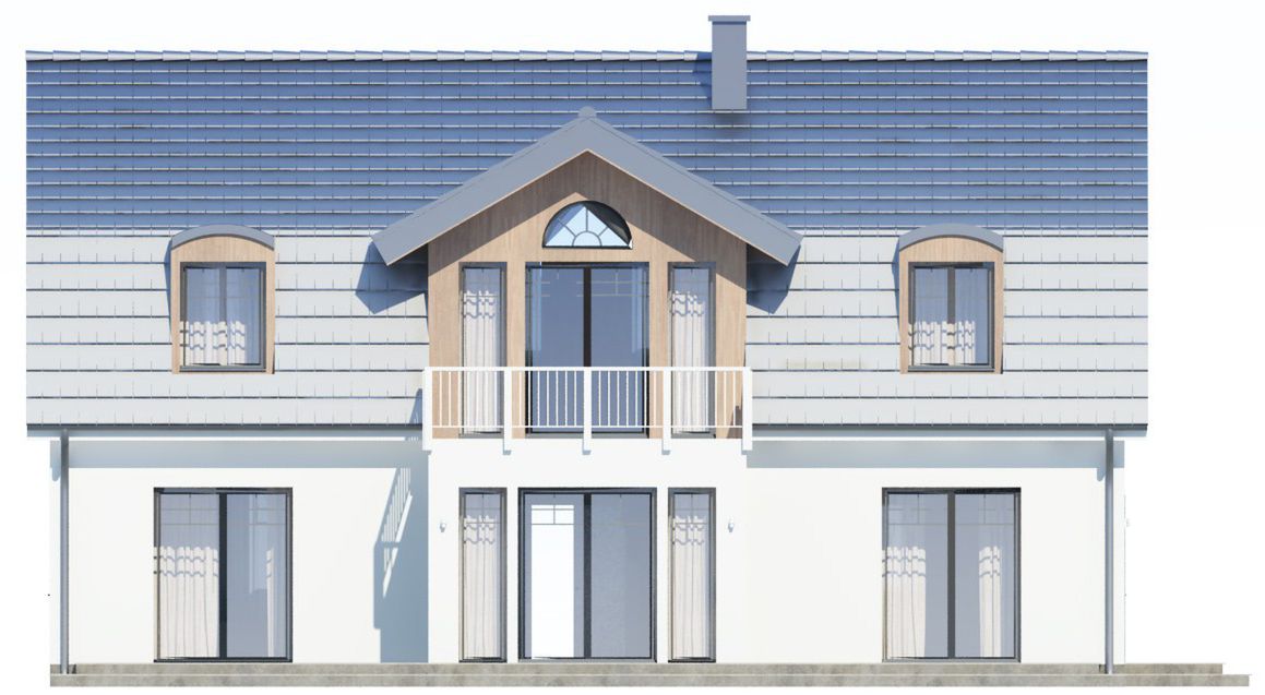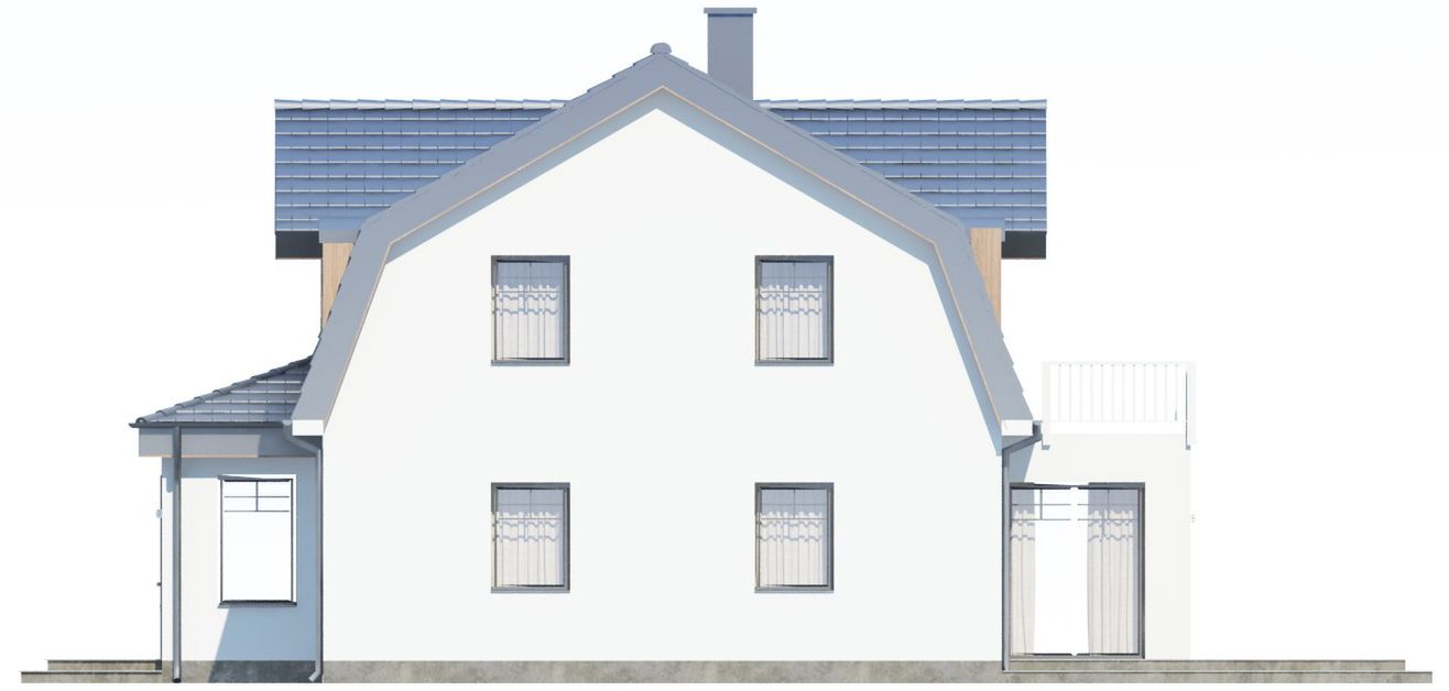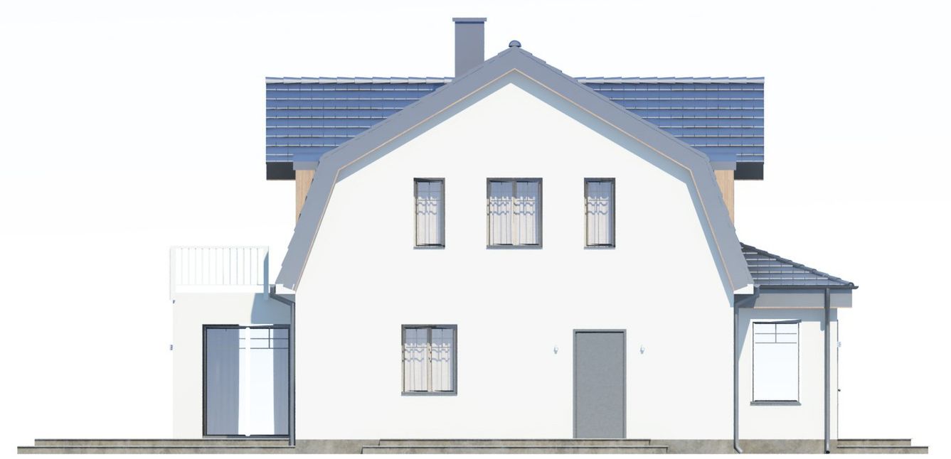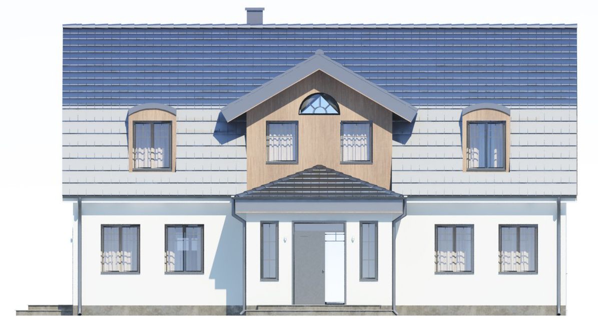 Graficzne opracowanie rzutów poglądowych widocznych na karcie projektu zostało wykonane przez Extradom.pl. Prezentowane przez Extradom.pl wizualizacje wykonane zostały przez autora projektu i należy poczytywać je jedynie za przykład i propozycję wykończenia, wizję architektoniczną autora projektu. Ostateczne wykończenie budynku może nastąpić na wiele sposobów. Szczegółowe rozwiązania zastosowane w oferowanej dokumentacji - w tym również ilość, lokalizacje i wygląd okien, drzwi, kominów - mogą w niewielkim stopniu różnić się od prezentowanej wizualizacji budynku.