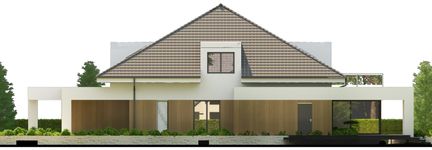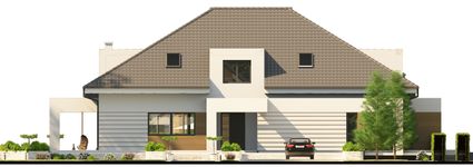 Graficzne opracowanie rzutów poglądowych widocznych na karcie projektu zostało wykonane przez Extradom.pl. Prezentowane przez Extradom.pl wizualizacje wykonane zostały przez autora projektu i należy poczytywać je jedynie za przykład i propozycję wykończenia, wizję architektoniczną autora projektu. Ostateczne wykończenie budynku może nastąpić na wiele sposobów. Szczegółowe rozwiązania zastosowane w oferowanej dokumentacji - w tym również ilość, lokalizacje i wygląd okien, drzwi, kominów - mogą w niewielkim stopniu różnić się od prezentowanej wizualizacji budynku.