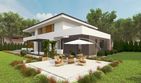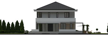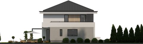 Graficzne opracowanie rzutów poglądowych widocznych na karcie projektu zostało wykonane przez Extradom.pl. Prezentowane przez Extradom.pl wizualizacje wykonane zostały przez autora projektu i należy poczytywać je jedynie za przykład i propozycję wykończenia, wizję architektoniczną autora projektu. Ostateczne wykończenie budynku może nastąpić na wiele sposobów. Szczegółowe rozwiązania zastosowane w oferowanej dokumentacji - w tym również ilość, lokalizacje i wygląd okien, drzwi, kominów - mogą w niewielkim stopniu różnić się od prezentowanej wizualizacji budynku.