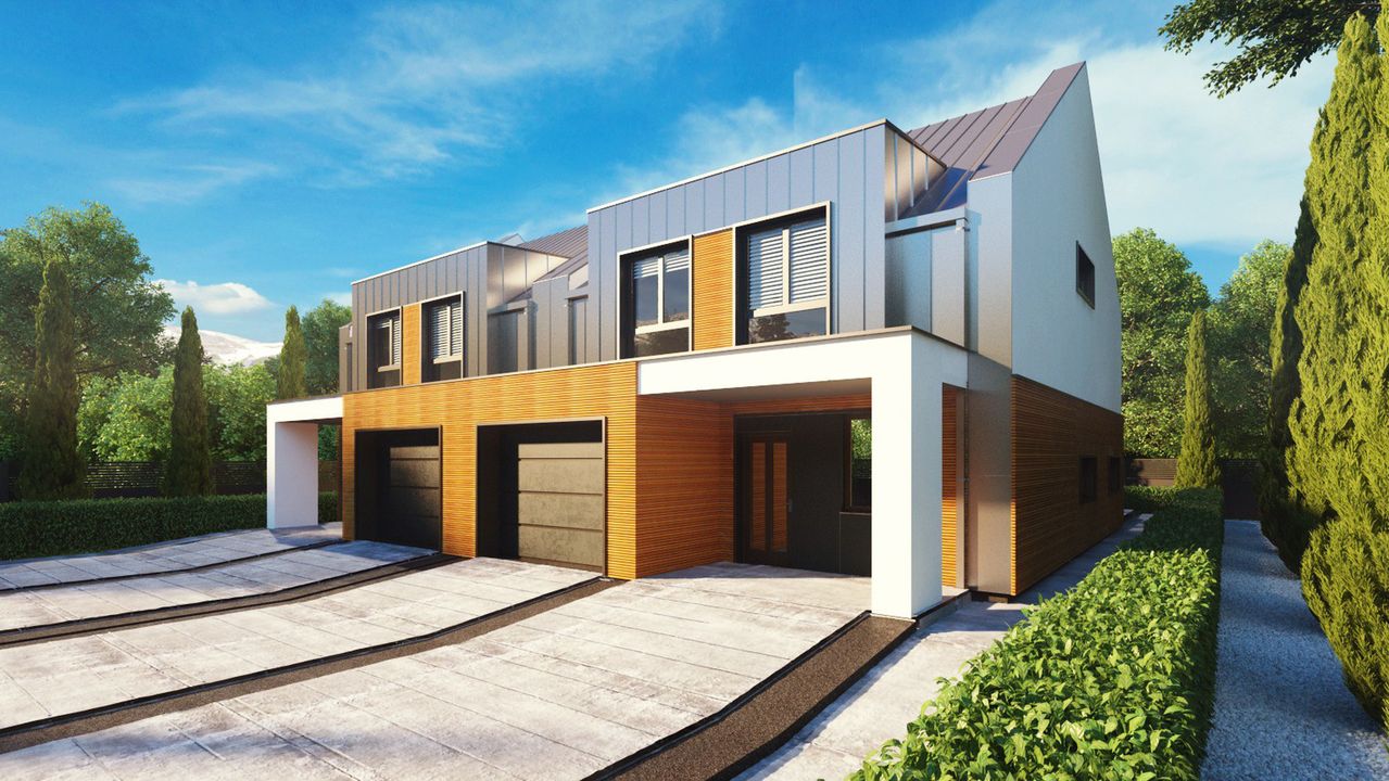 Projekt dostępny w konfiguracjach: bliźniak z segmentami lewym i prawym na osobnych dokumentacjach albo bliźniak na jednej dokumentacji albo jednorodzinny dwulokalowy.