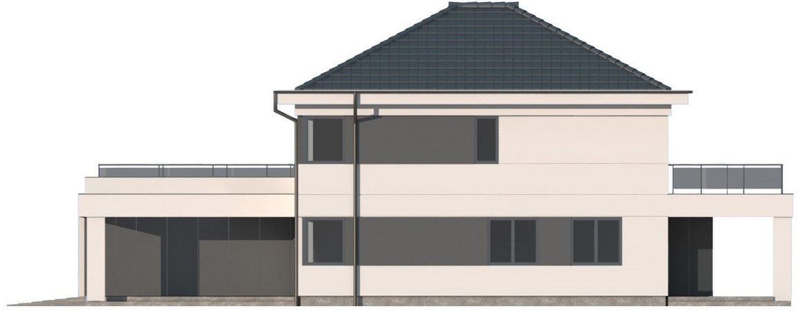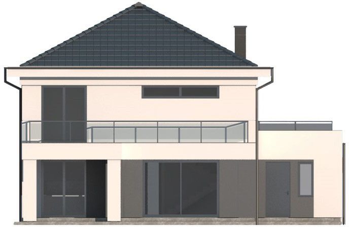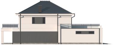 Graficzne opracowanie rzutów poglądowych widocznych na karcie projektu zostało wykonane przez Extradom.pl. Prezentowane przez Extradom.pl wizualizacje wykonane zostały przez autora projektu i należy poczytywać je jedynie za przykład i propozycję wykończenia, wizję architektoniczną autora projektu. Ostateczne wykończenie budynku może nastąpić na wiele sposobów. Szczegółowe rozwiązania zastosowane w oferowanej dokumentacji - w tym również ilość, lokalizacje i wygląd okien, drzwi, kominów - mogą w niewielkim stopniu różnić się od prezentowanej wizualizacji budynku.