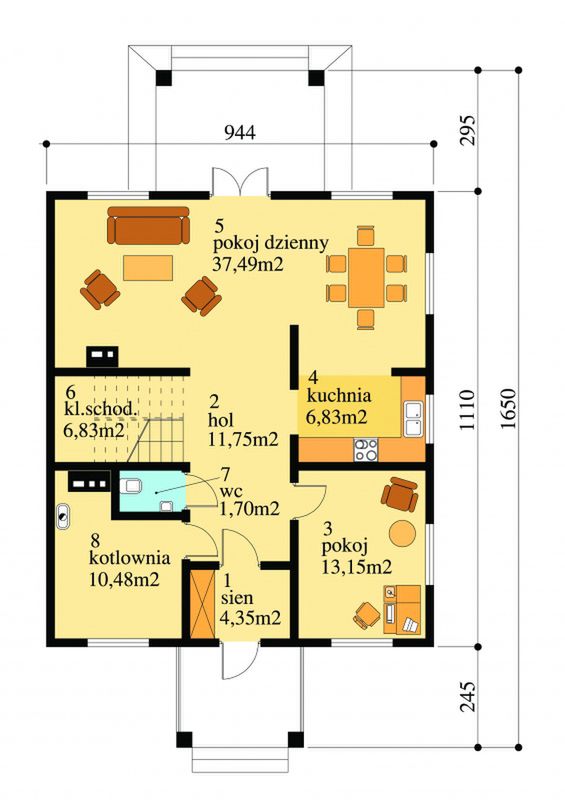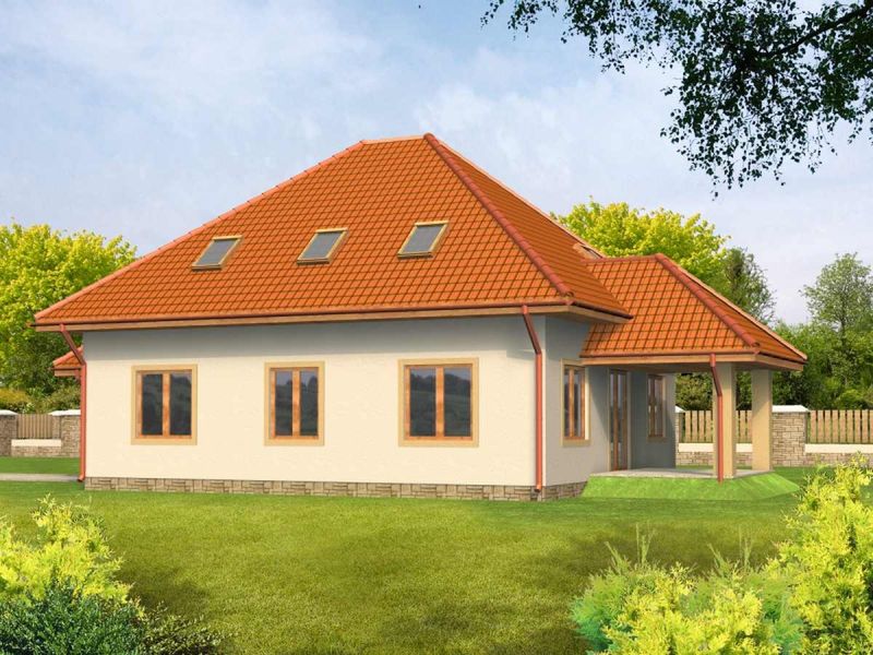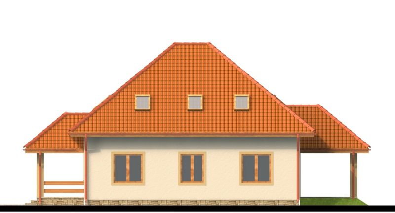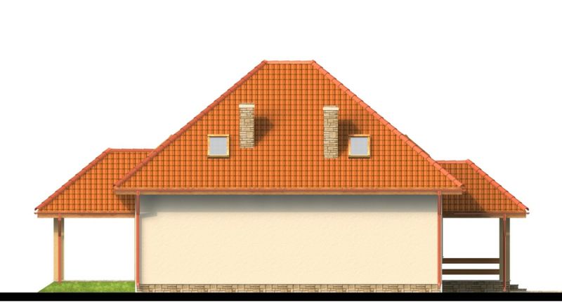 Graficzne opracowanie rzutów poglądowych widocznych na karcie projektu zostało wykonane przez Extradom.pl. Prezentowane przez Extradom.pl wizualizacje wykonane zostały przez autora projektu i należy poczytywać je jedynie za przykład i propozycję wykończenia, wizję architektoniczną autora projektu. Ostateczne wykończenie budynku może nastąpić na wiele sposobów. Szczegółowe rozwiązania zastosowane w oferowanej dokumentacji - w tym również ilość, lokalizacje i wygląd okien, drzwi, kominów - mogą w niewielkim stopniu różnić się od prezentowanej wizualizacji budynku.