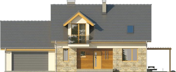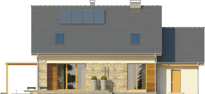 Graficzne opracowanie rzutów poglądowych widocznych na karcie projektu zostało wykonane przez Extradom.pl. Prezentowane przez Extradom.pl wizualizacje wykonane zostały przez autora projektu i należy poczytywać je jedynie za przykład i propozycję wykończenia, wizję architektoniczną autora projektu. Ostateczne wykończenie budynku może nastąpić na wiele sposobów. Szczegółowe rozwiązania zastosowane w oferowanej dokumentacji - w tym również ilość, lokalizacje i wygląd okien, drzwi, kominów - mogą w niewielkim stopniu różnić się od prezentowanej wizualizacji budynku.