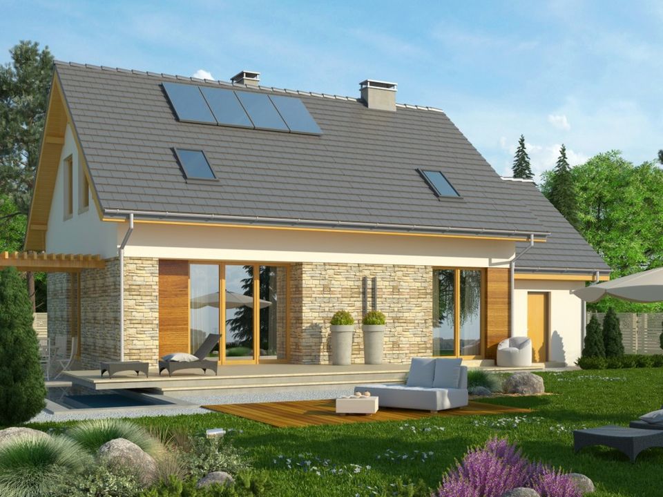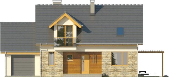 Graficzne opracowanie rzutów poglądowych widocznych na karcie projektu zostało wykonane przez Extradom.pl. Prezentowane przez Extradom.pl wizualizacje wykonane zostały przez autora projektu i należy poczytywać je jedynie za przykład i propozycję wykończenia, wizję architektoniczną autora projektu. Ostateczne wykończenie budynku może nastąpić na wiele sposobów. Szczegółowe rozwiązania zastosowane w oferowanej dokumentacji - w tym również ilość, lokalizacje i wygląd okien, drzwi, kominów - mogą w niewielkim stopniu różnić się od prezentowanej wizualizacji budynku.