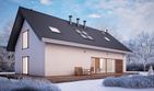 Graficzne opracowanie rzutów poglądowych widocznych na karcie projektu zostało wykonane przez Extradom.pl. Prezentowane przez Extradom.pl wizualizacje wykonane zostały przez autora projektu i należy poczytywać je jedynie za przykład i propozycję wykończenia, wizję architektoniczną autora projektu. Ostateczne wykończenie budynku może nastąpić na wiele sposobów. Szczegółowe rozwiązania zastosowane w oferowanej dokumentacji - w tym również ilość, lokalizacje i wygląd okien, drzwi, kominów - mogą w niewielkim stopniu różnić się od prezentowanej wizualizacji budynku.