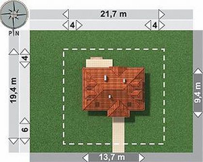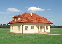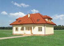 Graficzne opracowanie rzutów poglądowych widocznych na karcie projektu zostało wykonane przez Extradom.pl. Prezentowane przez Extradom.pl wizualizacje wykonane zostały przez autora projektu i należy poczytywać je jedynie za przykład i propozycję wykończenia, wizję architektoniczną autora projektu. Ostateczne wykończenie budynku może nastąpić na wiele sposobów. Szczegółowe rozwiązania zastosowane w oferowanej dokumentacji - w tym również ilość, lokalizacje i wygląd okien, drzwi, kominów - mogą w niewielkim stopniu różnić się od prezentowanej wizualizacji budynku.
