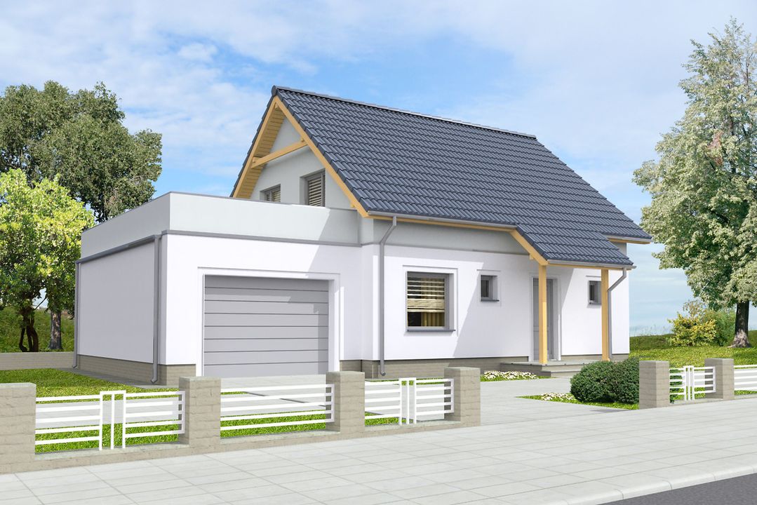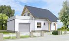 Graficzne opracowanie rzutów poglądowych widocznych na karcie projektu zostało wykonane przez Extradom.pl. Prezentowane przez Extradom.pl wizualizacje wykonane zostały przez autora projektu i należy poczytywać je jedynie za przykład i propozycję wykończenia, wizję architektoniczną autora projektu. Ostateczne wykończenie budynku może nastąpić na wiele sposobów. Szczegółowe rozwiązania zastosowane w oferowanej dokumentacji - w tym również ilość, lokalizacje i wygląd okien, drzwi, kominów - mogą w niewielkim stopniu różnić się od prezentowanej wizualizacji budynku.