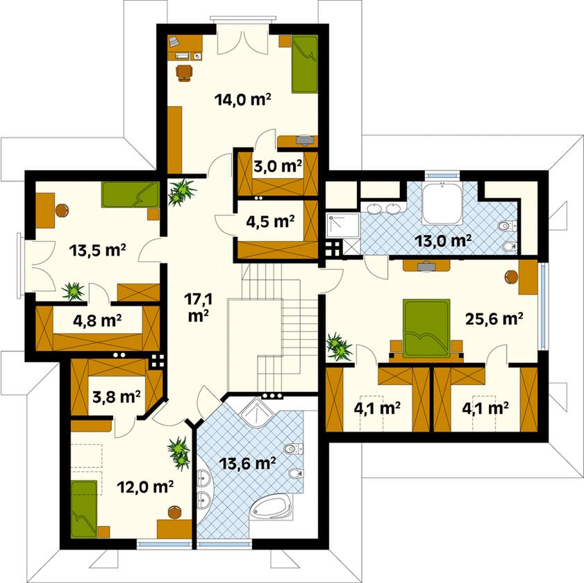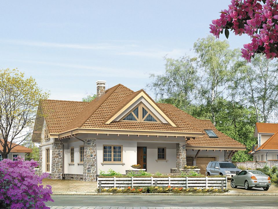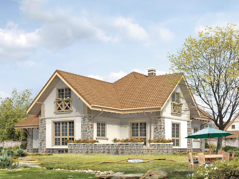 Graficzne opracowanie rzutów poglądowych widocznych na karcie projektu zostało wykonane przez Extradom.pl. Prezentowane przez Extradom.pl wizualizacje wykonane zostały przez autora projektu i należy poczytywać je jedynie za przykład i propozycję wykończenia, wizję architektoniczną autora projektu. Ostateczne wykończenie budynku może nastąpić na wiele sposobów. Szczegółowe rozwiązania zastosowane w oferowanej dokumentacji - w tym również ilość, lokalizacje i wygląd okien, drzwi, kominów - mogą w niewielkim stopniu różnić się od prezentowanej wizualizacji budynku.