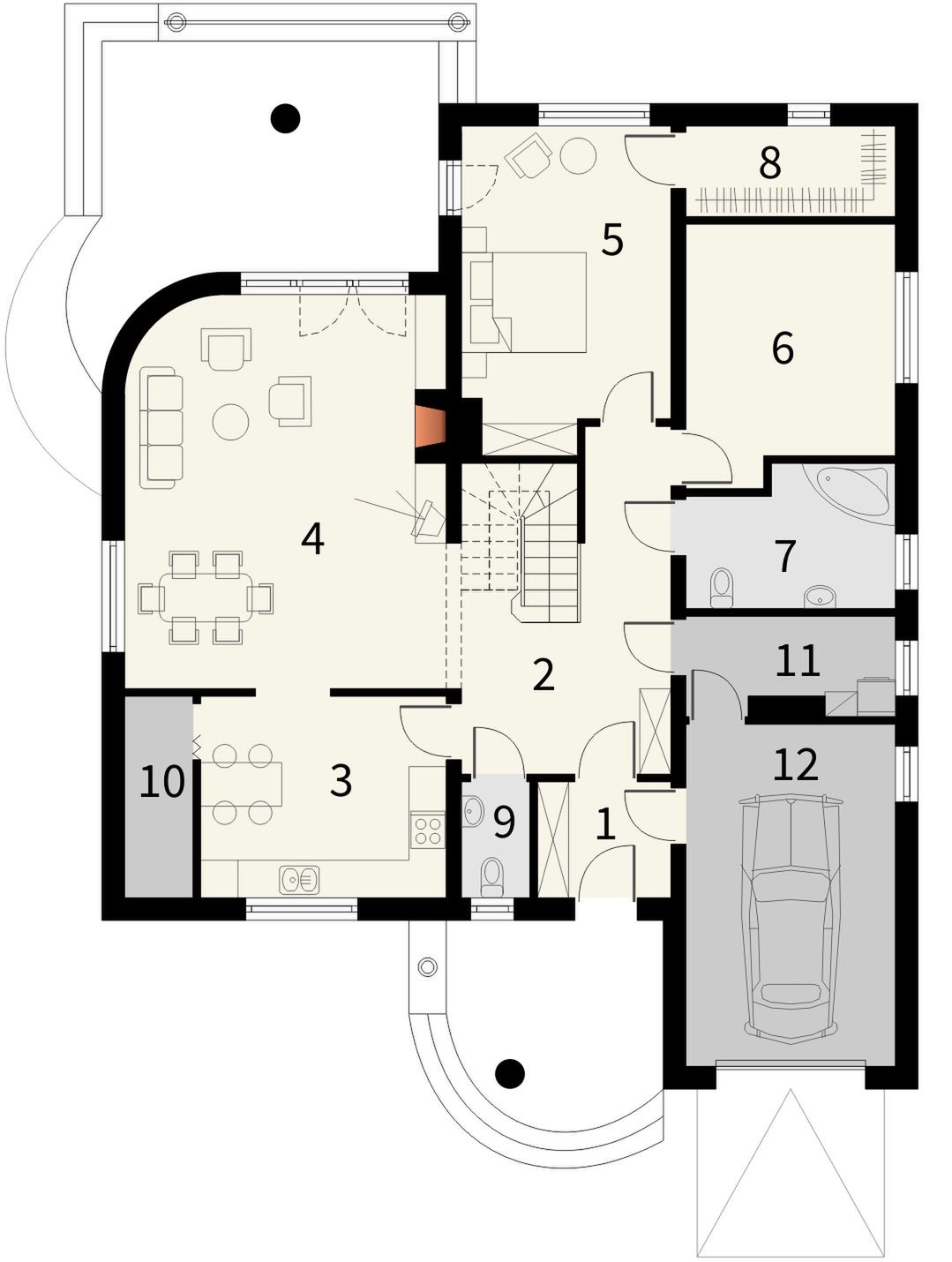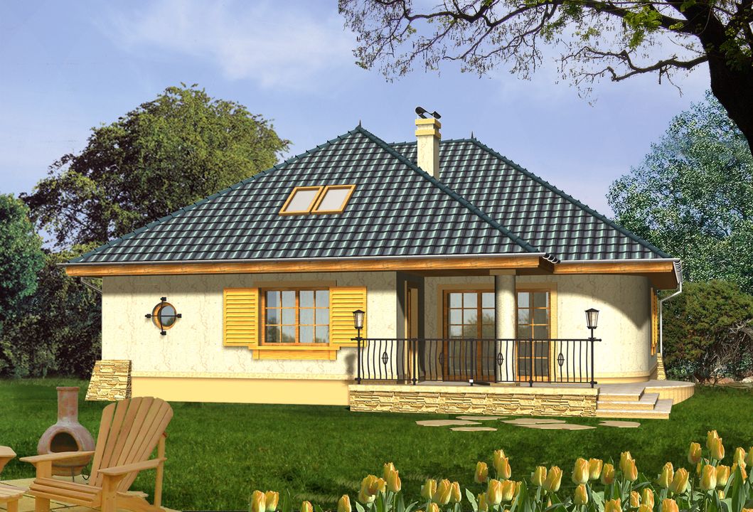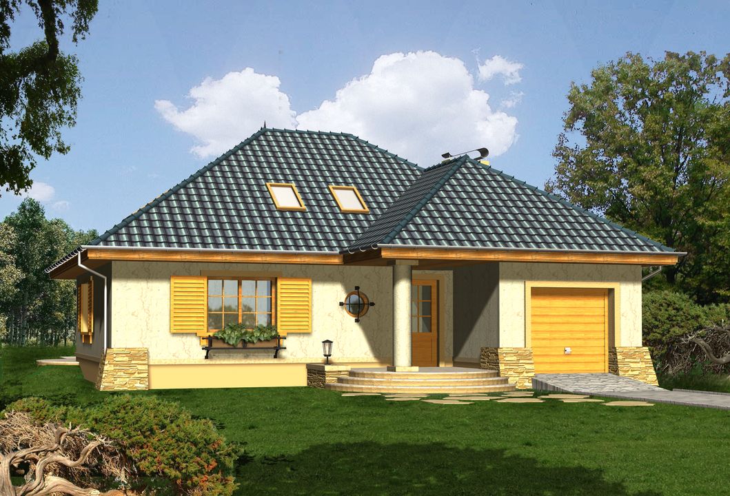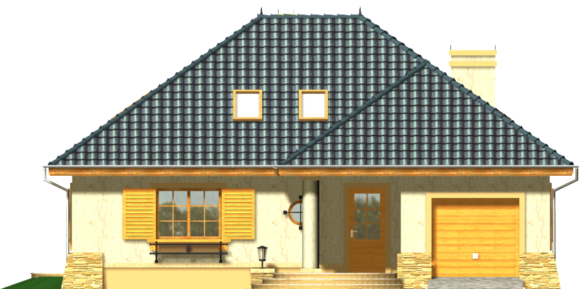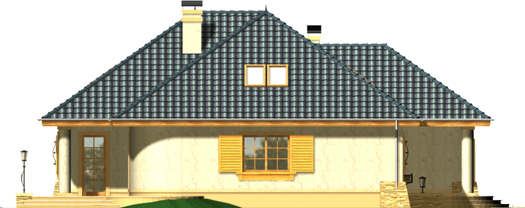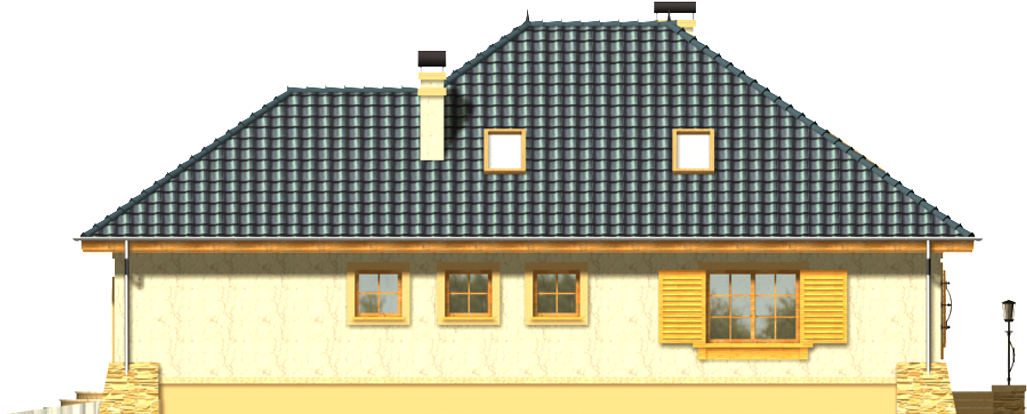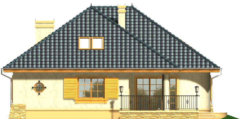 Graficzne opracowanie rzutów poglądowych widocznych na karcie projektu zostało wykonane przez Extradom.pl. Prezentowane przez Extradom.pl wizualizacje wykonane zostały przez autora projektu i należy poczytywać je jedynie za przykład i propozycję wykończenia, wizję architektoniczną autora projektu. Ostateczne wykończenie budynku może nastąpić na wiele sposobów. Szczegółowe rozwiązania zastosowane w oferowanej dokumentacji - w tym również ilość, lokalizacje i wygląd okien, drzwi, kominów - mogą w niewielkim stopniu różnić się od prezentowanej wizualizacji budynku.