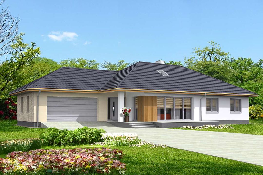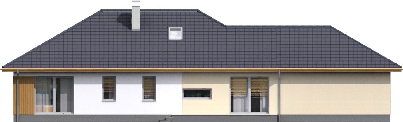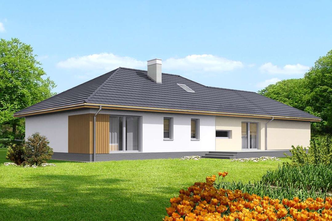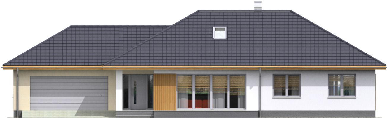 Graficzne opracowanie rzutów poglądowych widocznych na karcie projektu zostało wykonane przez Extradom.pl. Prezentowane przez Extradom.pl wizualizacje wykonane zostały przez autora projektu i należy poczytywać je jedynie za przykład i propozycję wykończenia, wizję architektoniczną autora projektu. Ostateczne wykończenie budynku może nastąpić na wiele sposobów. Szczegółowe rozwiązania zastosowane w oferowanej dokumentacji - w tym również ilość, lokalizacje i wygląd okien, drzwi, kominów - mogą w niewielkim stopniu różnić się od prezentowanej wizualizacji budynku.