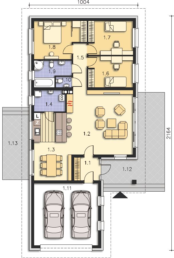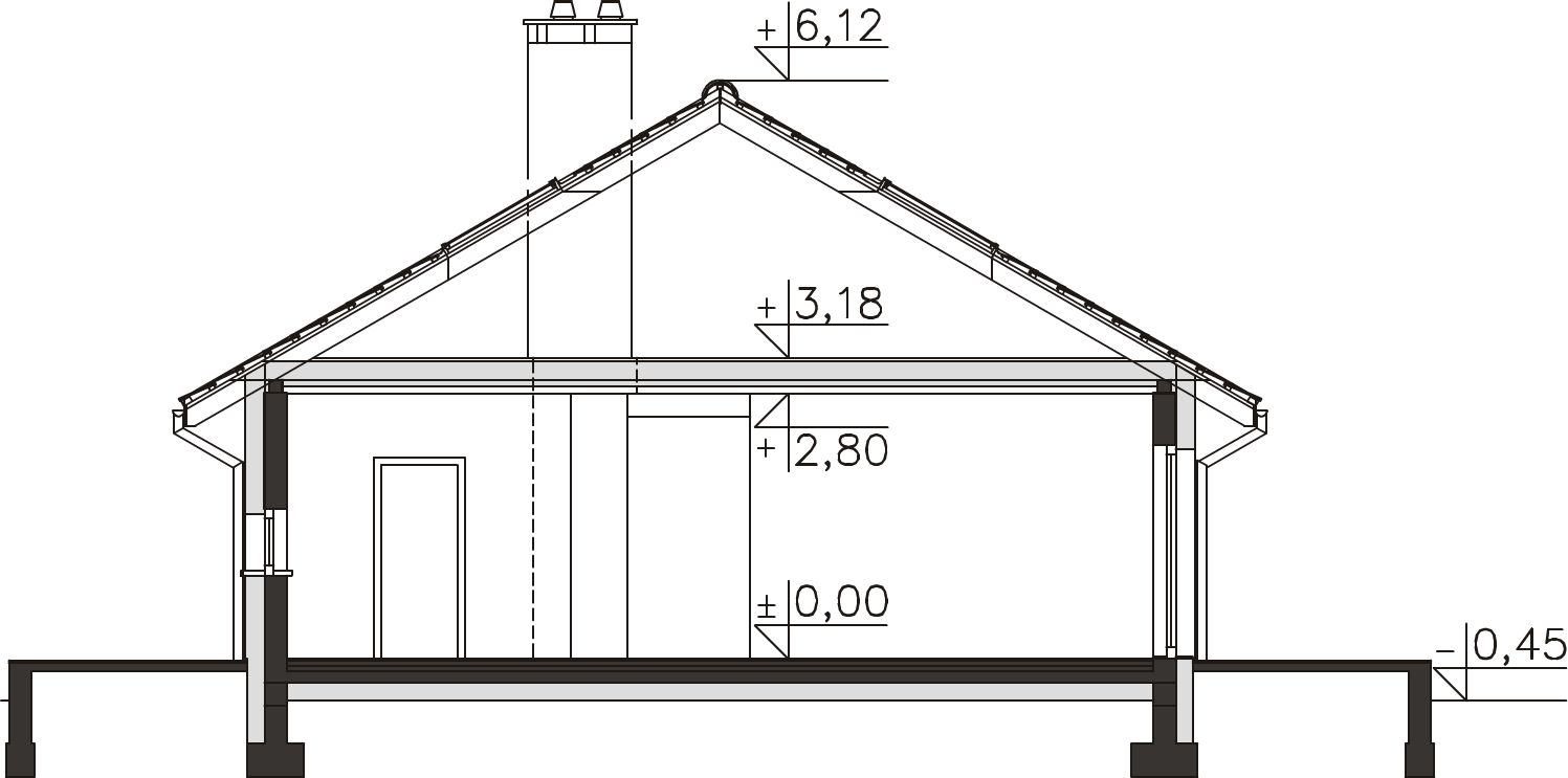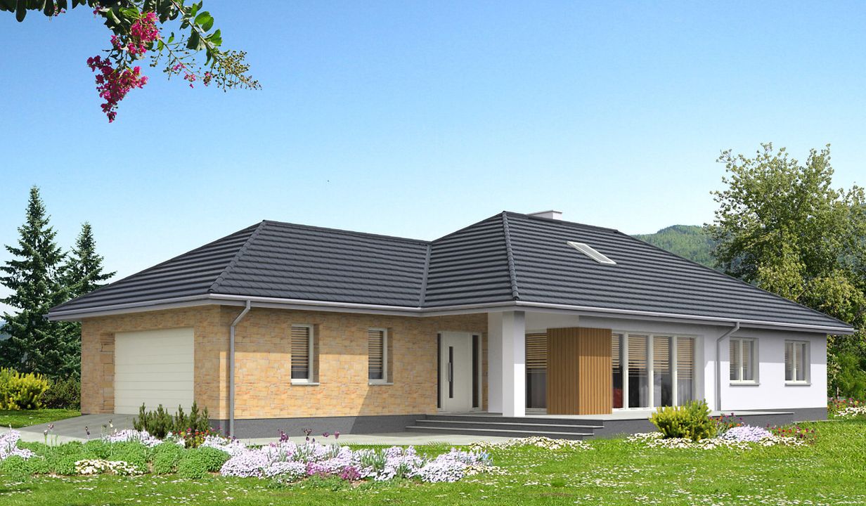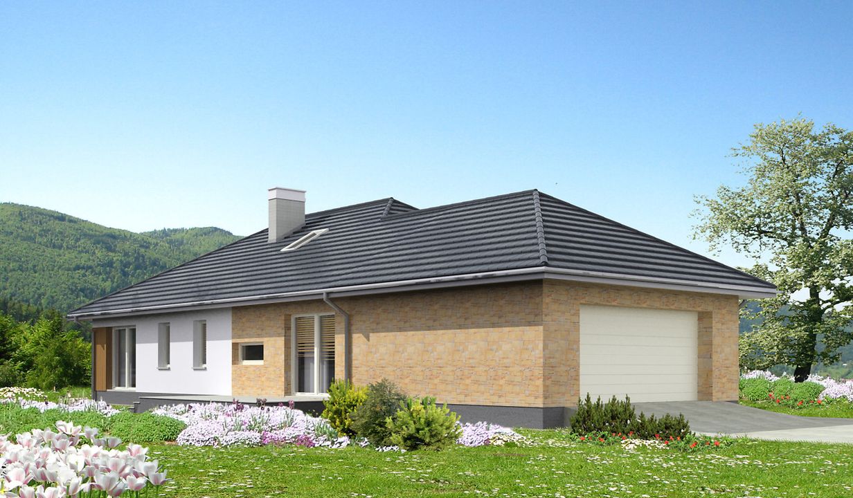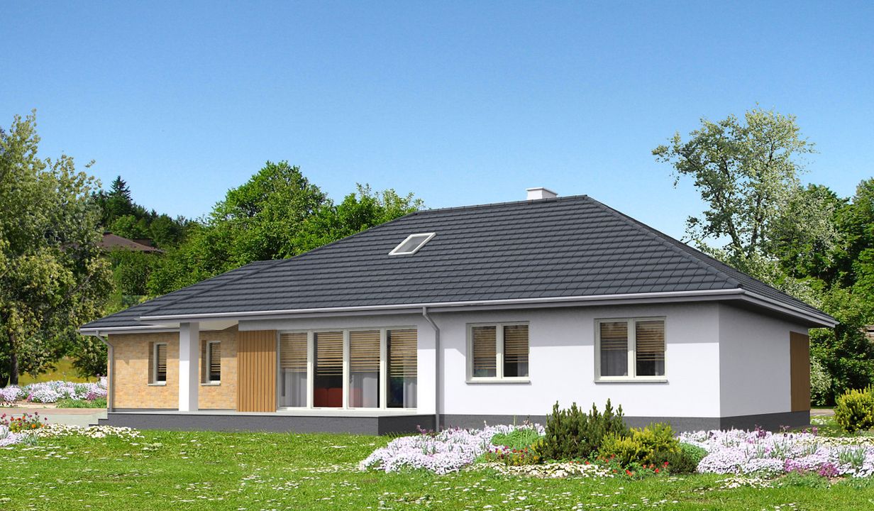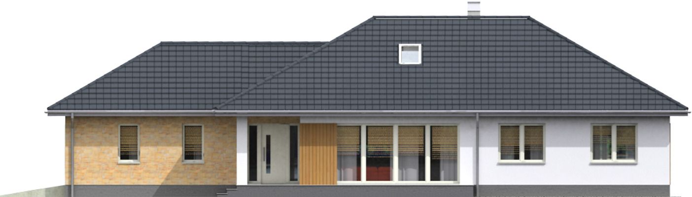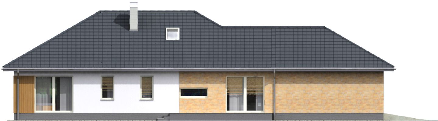 Graficzne opracowanie rzutów poglądowych widocznych na karcie projektu zostało wykonane przez Extradom.pl. Prezentowane przez Extradom.pl wizualizacje wykonane zostały przez autora projektu i należy poczytywać je jedynie za przykład i propozycję wykończenia, wizję architektoniczną autora projektu. Ostateczne wykończenie budynku może nastąpić na wiele sposobów. Szczegółowe rozwiązania zastosowane w oferowanej dokumentacji - w tym również ilość, lokalizacje i wygląd okien, drzwi, kominów - mogą w niewielkim stopniu różnić się od prezentowanej wizualizacji budynku.