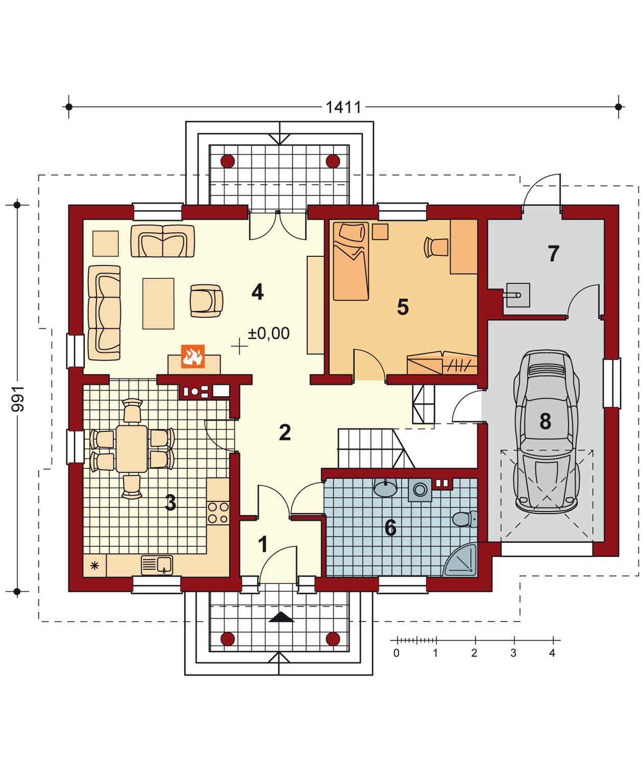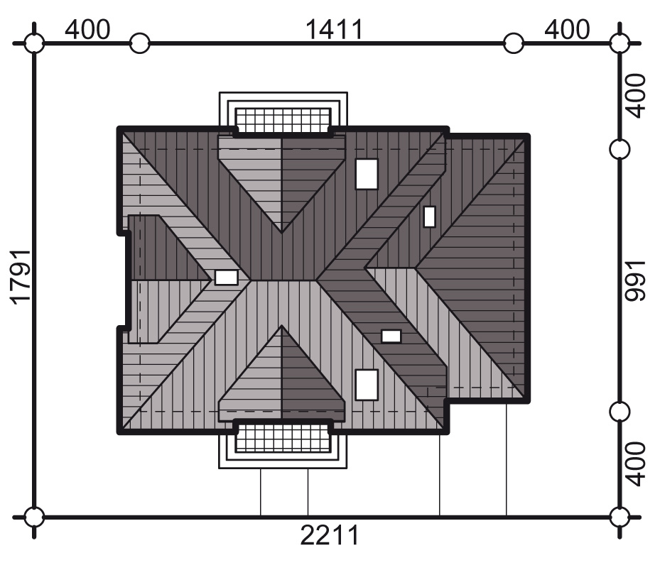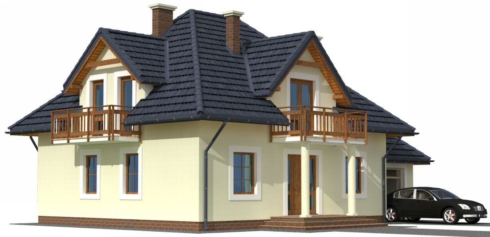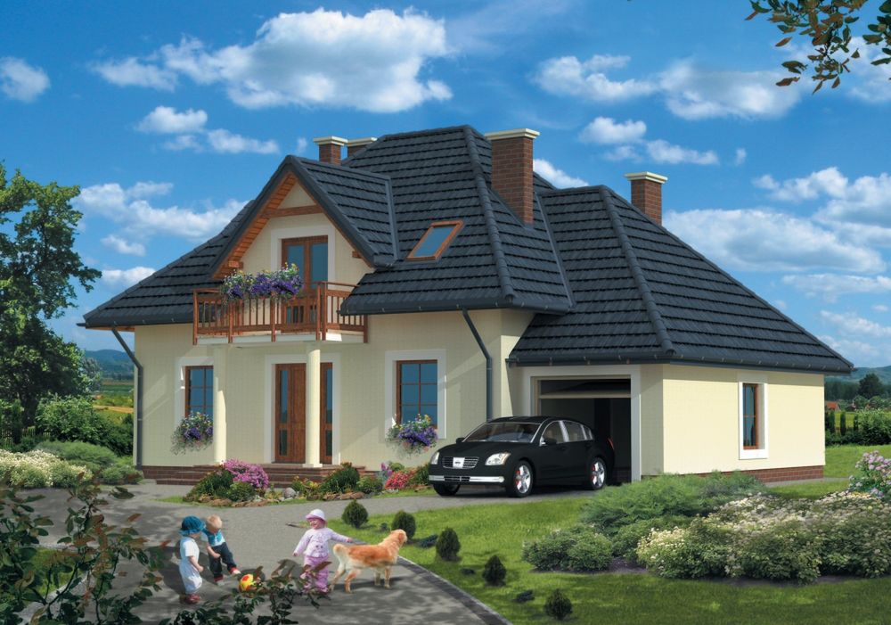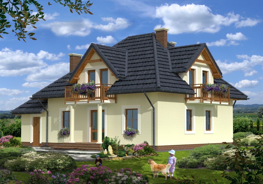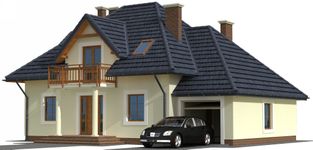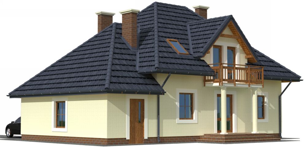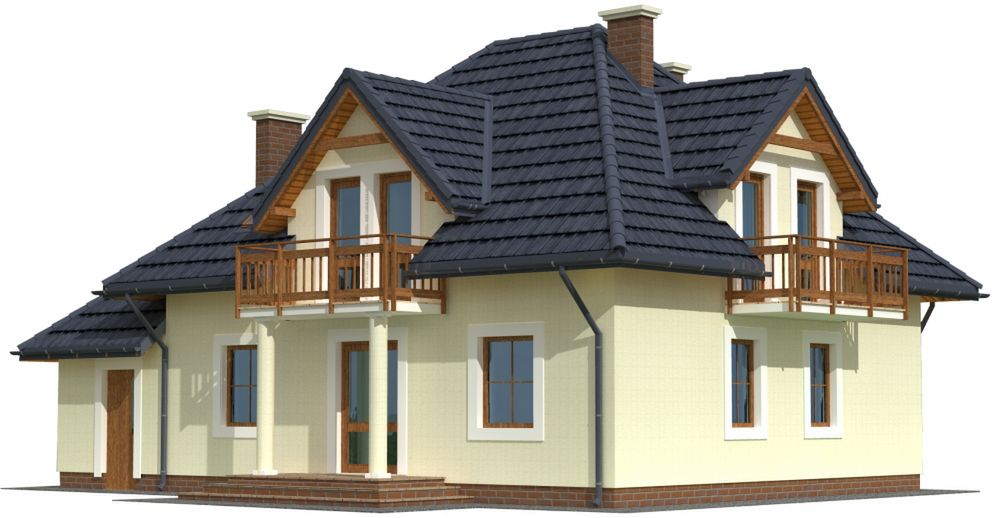 Graficzne opracowanie rzutów poglądowych widocznych na karcie projektu zostało wykonane przez Extradom.pl. Prezentowane przez Extradom.pl wizualizacje wykonane zostały przez autora projektu i należy poczytywać je jedynie za przykład i propozycję wykończenia, wizję architektoniczną autora projektu. Ostateczne wykończenie budynku może nastąpić na wiele sposobów. Szczegółowe rozwiązania zastosowane w oferowanej dokumentacji - w tym również ilość, lokalizacje i wygląd okien, drzwi, kominów - mogą w niewielkim stopniu różnić się od prezentowanej wizualizacji budynku.