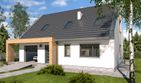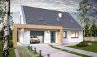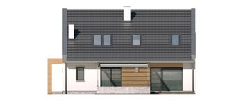 Graficzne opracowanie rzutów poglądowych widocznych na karcie projektu zostało wykonane przez Extradom.pl. Prezentowane przez Extradom.pl wizualizacje wykonane zostały przez autora projektu i należy poczytywać je jedynie za przykład i propozycję wykończenia, wizję architektoniczną autora projektu. Ostateczne wykończenie budynku może nastąpić na wiele sposobów. Szczegółowe rozwiązania zastosowane w oferowanej dokumentacji - w tym również ilość, lokalizacje i wygląd okien, drzwi, kominów - mogą w niewielkim stopniu różnić się od prezentowanej wizualizacji budynku.