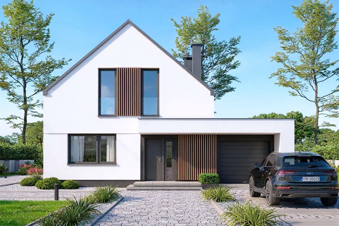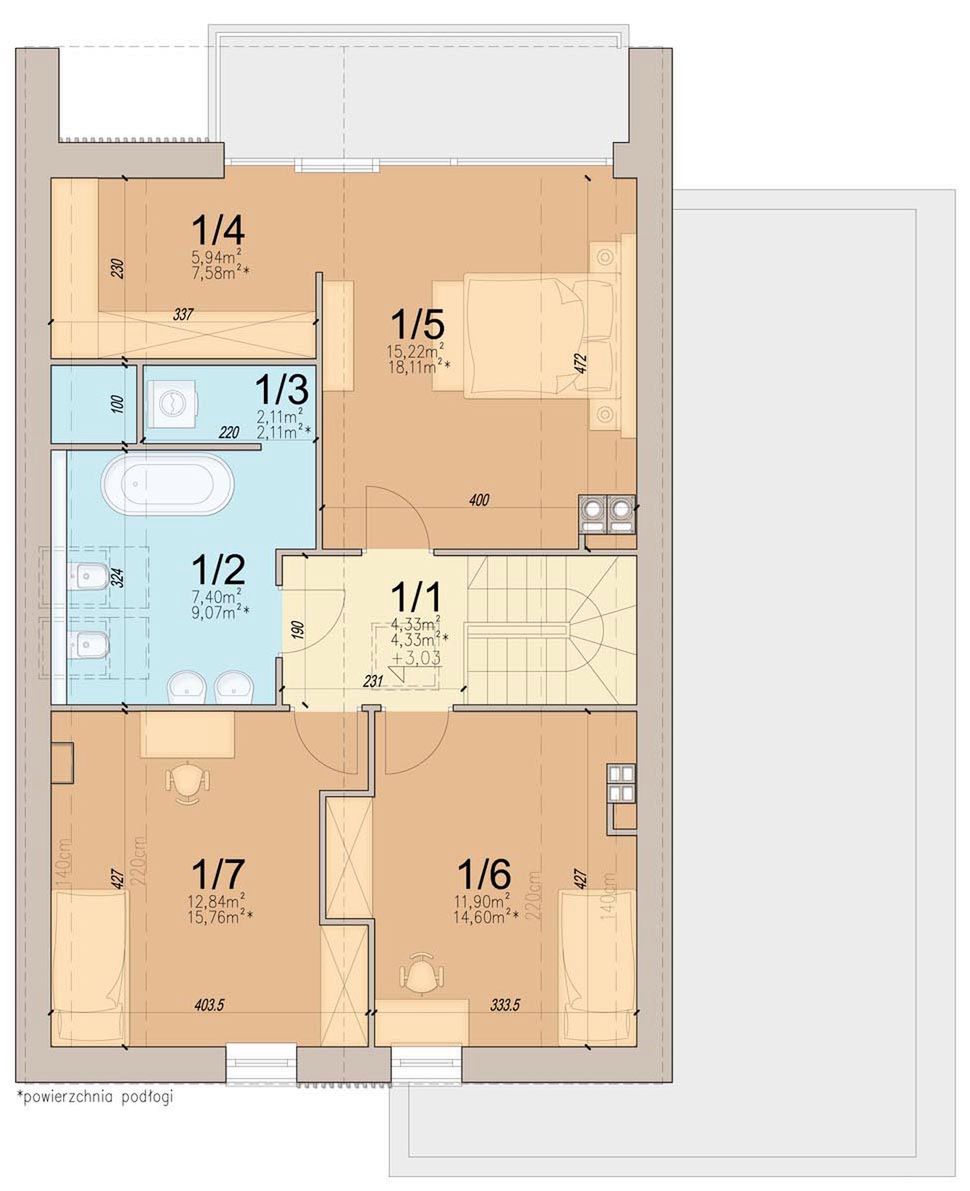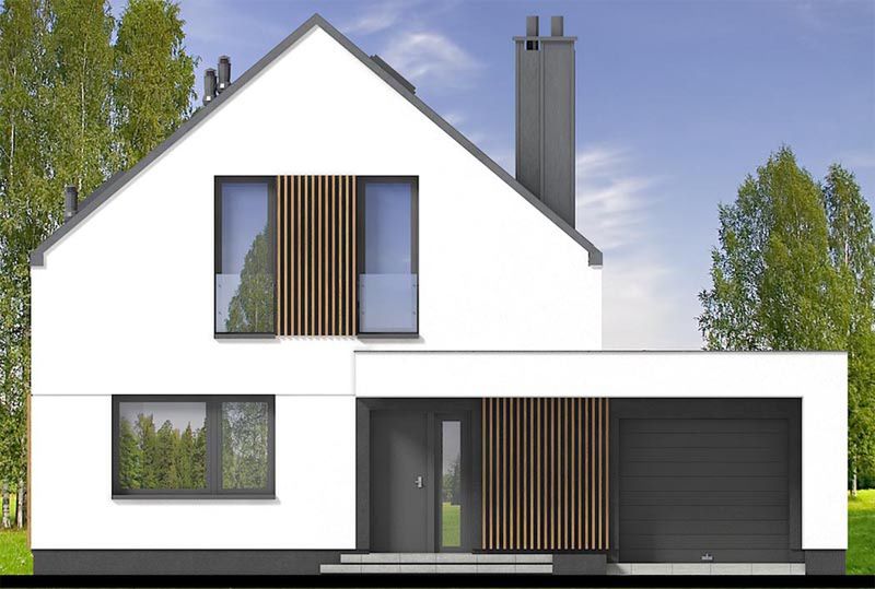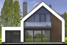 Graficzne opracowanie rzutów poglądowych widocznych na karcie projektu zostało wykonane przez Extradom.pl. Prezentowane przez Extradom.pl wizualizacje wykonane zostały przez autora projektu i należy poczytywać je jedynie za przykład i propozycję wykończenia, wizję architektoniczną autora projektu. Ostateczne wykończenie budynku może nastąpić na wiele sposobów. Szczegółowe rozwiązania zastosowane w oferowanej dokumentacji - w tym również ilość, lokalizacje i wygląd okien, drzwi, kominów - mogą w niewielkim stopniu różnić się od prezentowanej wizualizacji budynku.