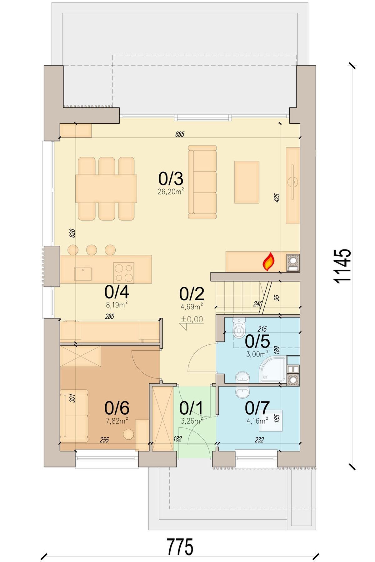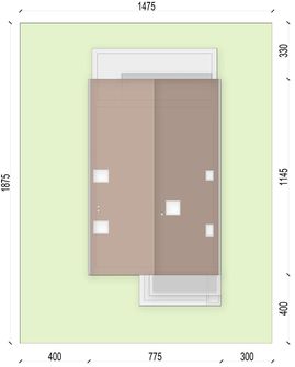 Graficzne opracowanie rzutów poglądowych widocznych na karcie projektu zostało wykonane przez Extradom.pl. Prezentowane przez Extradom.pl wizualizacje wykonane zostały przez autora projektu i należy poczytywać je jedynie za przykład i propozycję wykończenia, wizję architektoniczną autora projektu. Ostateczne wykończenie budynku może nastąpić na wiele sposobów. Szczegółowe rozwiązania zastosowane w oferowanej dokumentacji - w tym również ilość, lokalizacje i wygląd okien, drzwi, kominów - mogą w niewielkim stopniu różnić się od prezentowanej wizualizacji budynku.