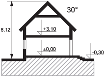 Ściany zewnętrzne: technologia tradycyjna-ściany jednowarstwowe POROTHERM. Ściany wewnętrzne nośne z pustaków ceramicznych. Ścianki działowe z cegły kratówki lub systemowe z płyt gipsowo-kartonowych. Schody wewnętrzne drewniane. Strop monolityczny, żelbetowy. Konstrukcja dachu drewniana, płatwiowo-krokwiowa, nachylenie połaci dachowych 57% (30 stopni). Pokrycie dachu z dachówki ceramicznej.