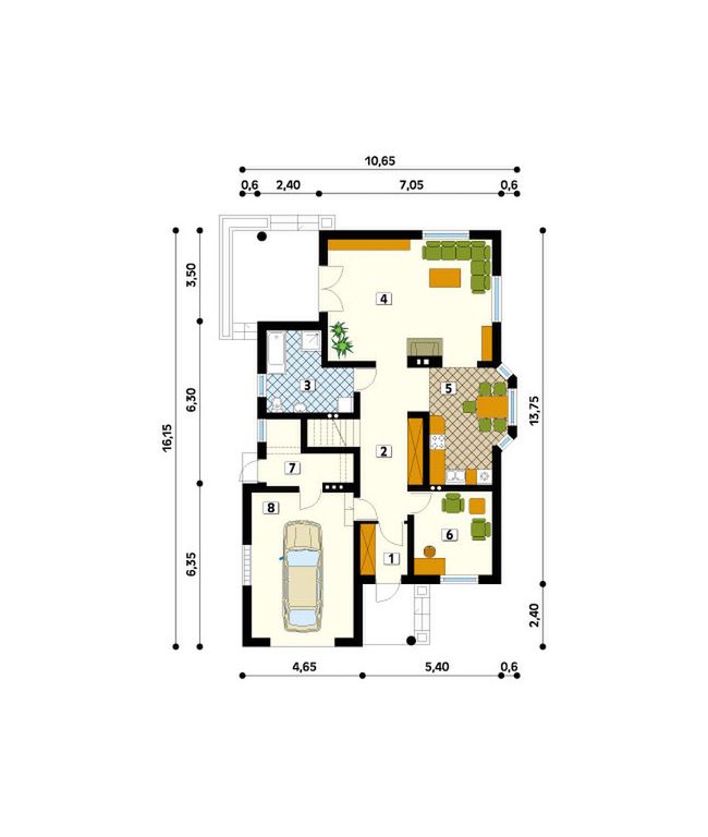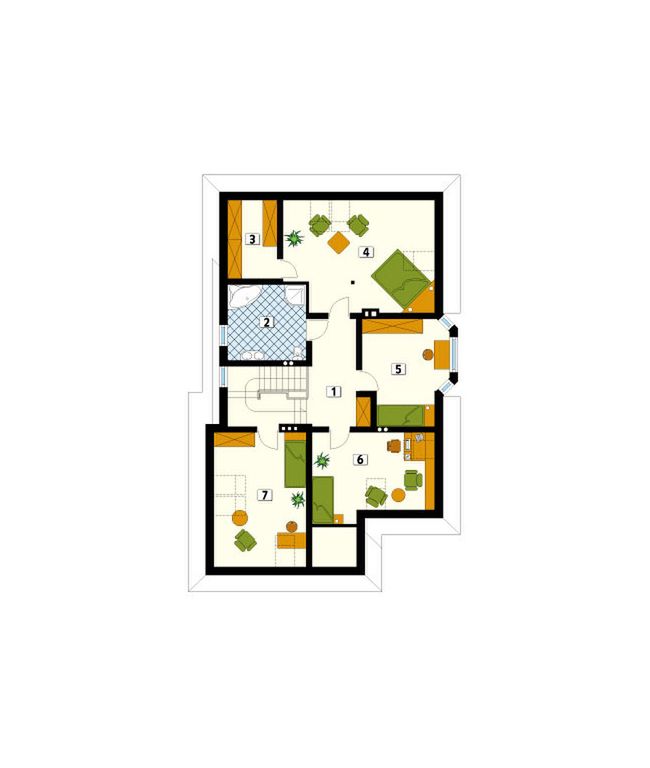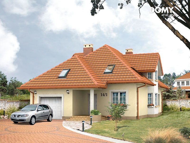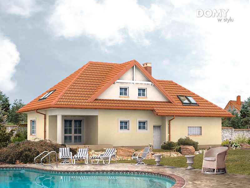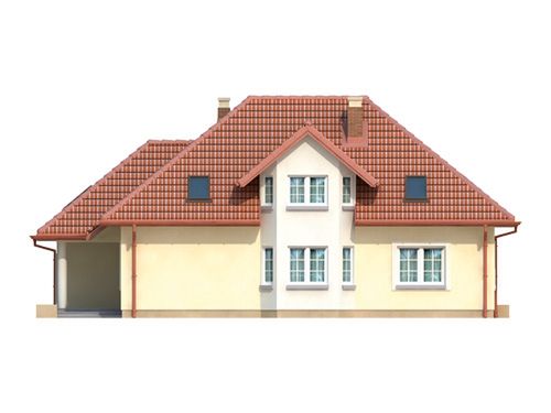 Graficzne opracowanie rzutów poglądowych widocznych na karcie projektu zostało wykonane przez Extradom.pl. Prezentowane przez Extradom.pl wizualizacje wykonane zostały przez autora projektu i należy poczytywać je jedynie za przykład i propozycję wykończenia, wizję architektoniczną autora projektu. Ostateczne wykończenie budynku może nastąpić na wiele sposobów. Szczegółowe rozwiązania zastosowane w oferowanej dokumentacji - w tym również ilość, lokalizacje i wygląd okien, drzwi, kominów - mogą w niewielkim stopniu różnić się od prezentowanej wizualizacji budynku.