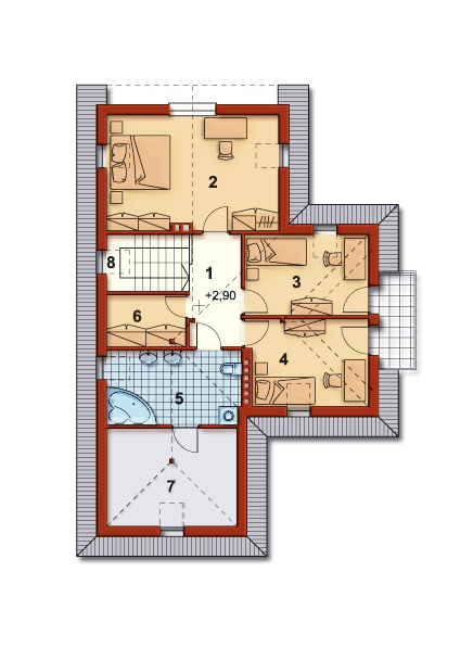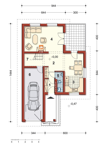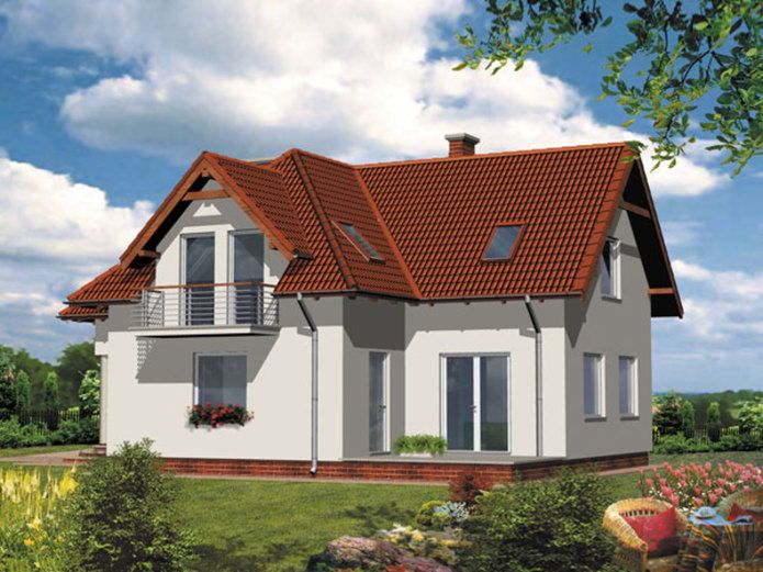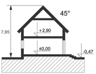 Graficzne opracowanie rzutów poglądowych widocznych na karcie projektu zostało wykonane przez Extradom.pl. Prezentowane przez Extradom.pl wizualizacje wykonane zostały przez autora projektu i należy poczytywać je jedynie za przykład i propozycję wykończenia, wizję architektoniczną autora projektu. Ostateczne wykończenie budynku może nastąpić na wiele sposobów. Szczegółowe rozwiązania zastosowane w oferowanej dokumentacji - w tym również ilość, lokalizacje i wygląd okien, drzwi, kominów - mogą w niewielkim stopniu różnić się od prezentowanej wizualizacji budynku.