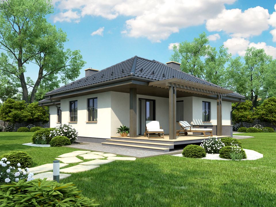 Zdecydowałem się na projekt domu Vito KRH1283, ponieważ przypadł mi do gustu pod wieloma względami. Od początku szukałem nie za dużego budynku, który będzie w miarę niedrogi w utrzymaniu. Ponadto, zależało mi na tym, aby wszystkie pomieszczenia znajdowały się na jednej kondygnacji. Zdaję sobie sprawę, że w przyszłości, gdy będę miał już swoje lata, wchodzenie po schodach stanie się mało komfortowe, dlatego też wolałem wybudować dom parterowy. W tym projekcie kotłownia znajduje się na tym samym poziomie co pozostałe pokoje, więc gdy będziemy starsi nie będziemy musieli schodzić z opałem do piwnicy. Poza czysto praktycznymi aspektami, budynek spodobał nam się również pod względem wizualnym.Realizacja naszego nowego domu przebiegła bezproblemowo. Zatrudnieni przez nas fachowcy znali się na swojej pracy i udało im się szybko postawić i wykończyć cały budynek. Budowa rozpoczęła się w maju, a na początku października następnego roku wprowadziliśmy się do w pełni gotowego i urządzonego domu.W naszym przypadku ściany zostały wymurowane z bloczków Suporex i ocieplone 12cm warstwą styropianu. Budynek całkiem dobrze trzyma ciepło, wiec nie mam powodu do narzekania, tym bardziej że zdecydowaliśmy się na ogrzewanie domu przy pomocy kotła na ekogroszek. To wydajny opał, więc takie rozwiązanie jest dosyć oszczędne. Przez cały zeszły rok zużyłem trochę ponad 2 tony węgla, aczkolwiek trzeba uwzględnić, że zima była wtedy dość łagodna. Aby ogrzać wodę użytkową w sezonie letnim, wystarczy iż napełnię zasobnik 150 kilogramami ekogroszku i w zupełności wystarcza to na całe lato.Gdy realizowaliśmy projekt domu Vito KRH1283, cieśla tworzący więźbę zaproponował nam powiększenie daszku nad wejściem. Pomysł nam się spodobał i postanowiliśmy z niego skorzystać. Przedłużony dach został dodatkowo podparty dwoma drewnianymi filarami i bardzo dobrze się to prezentuje. Przewidziany przez architekta układ pomieszczeń odpowiadał mi od samego początku, aczkolwiek postanowiłem wprowadzić w nim jedną, niewielką zmianę. Obecnie łazienka jest nieco większa niż w oryginale, gdyż powiększyłem ją kosztem jednego z pokoi. W tym celu przesunąłem o 1m ściankę działową dzielącą te pomieszczenia.W naszym nowym domu mieszkam z moją żoną oraz naszą córką i wszyscy doskonale się mieścimy. Został nam jeszcze jeden wolny pokój, który w naszym przypadku funkcjonuje jako sypialnia dla gości. Myślę, że małżeństwu z dwójką dzieci również żyłoby się wygodnie na takiej powierzchni, ale przy większej ilości osób będzie już mniej komfortowo. Jestem zadowolony, iż zdecydowaliśmy się na projekt domu parterowego Vito KRH1283. To nie za duży i prosty budynek, który całkowicie odpowiada potrzebom mojej rodziny. Bardzo się cieszę, iż pomimo niezbyt wielkiego metrażu naszego domu mamy całkiem sporą łazienkę i salon. Polecam i pozdrawiam.