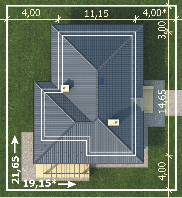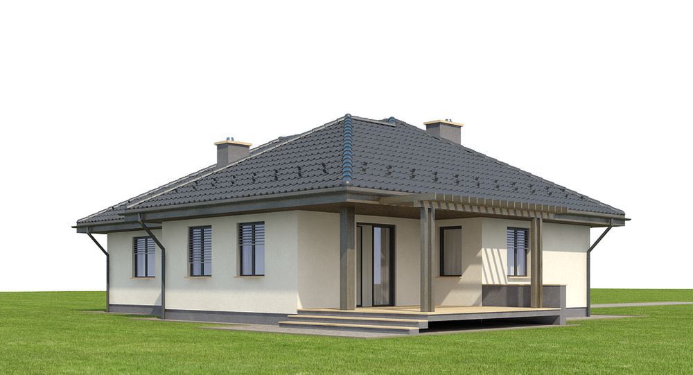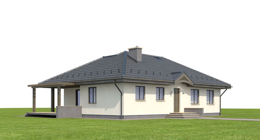 Graficzne opracowanie rzutów poglądowych widocznych na karcie projektu zostało wykonane przez Extradom.pl. Prezentowane przez Extradom.pl wizualizacje wykonane zostały przez autora projektu i należy poczytywać je jedynie za przykład i propozycję wykończenia, wizję architektoniczną autora projektu. Ostateczne wykończenie budynku może nastąpić na wiele sposobów. Szczegółowe rozwiązania zastosowane w oferowanej dokumentacji - w tym również ilość, lokalizacje i wygląd okien, drzwi, kominów - mogą w niewielkim stopniu różnić się od prezentowanej wizualizacji budynku.