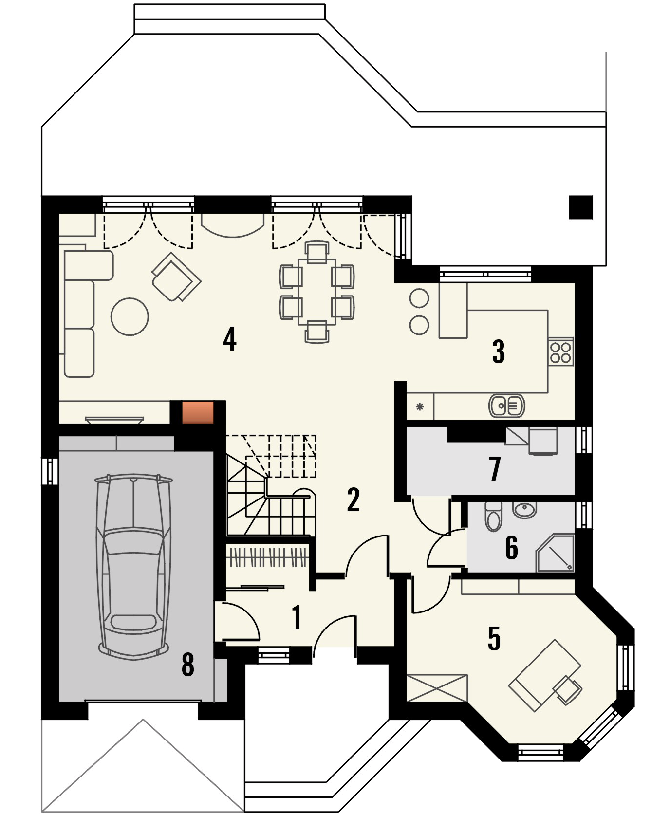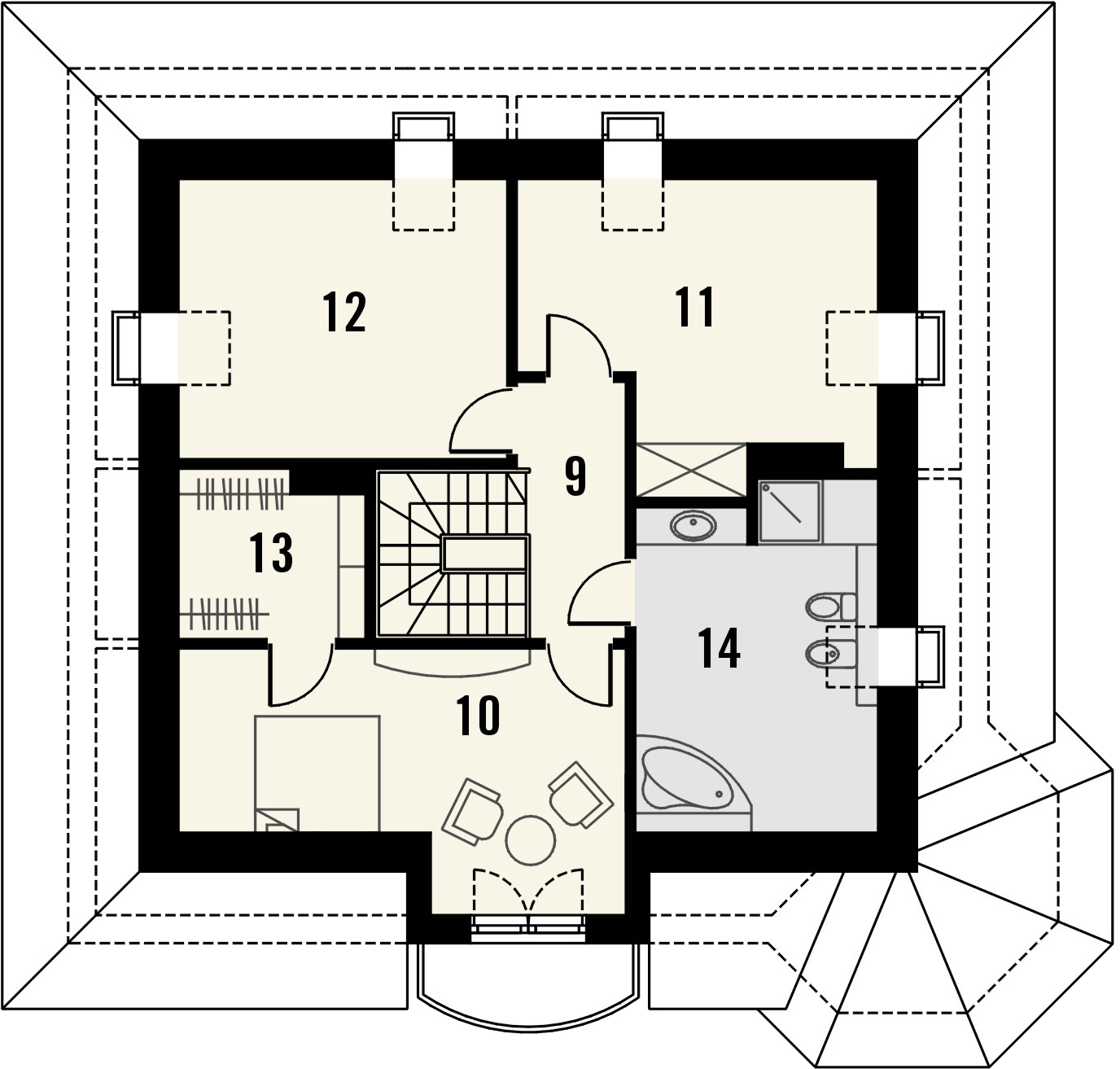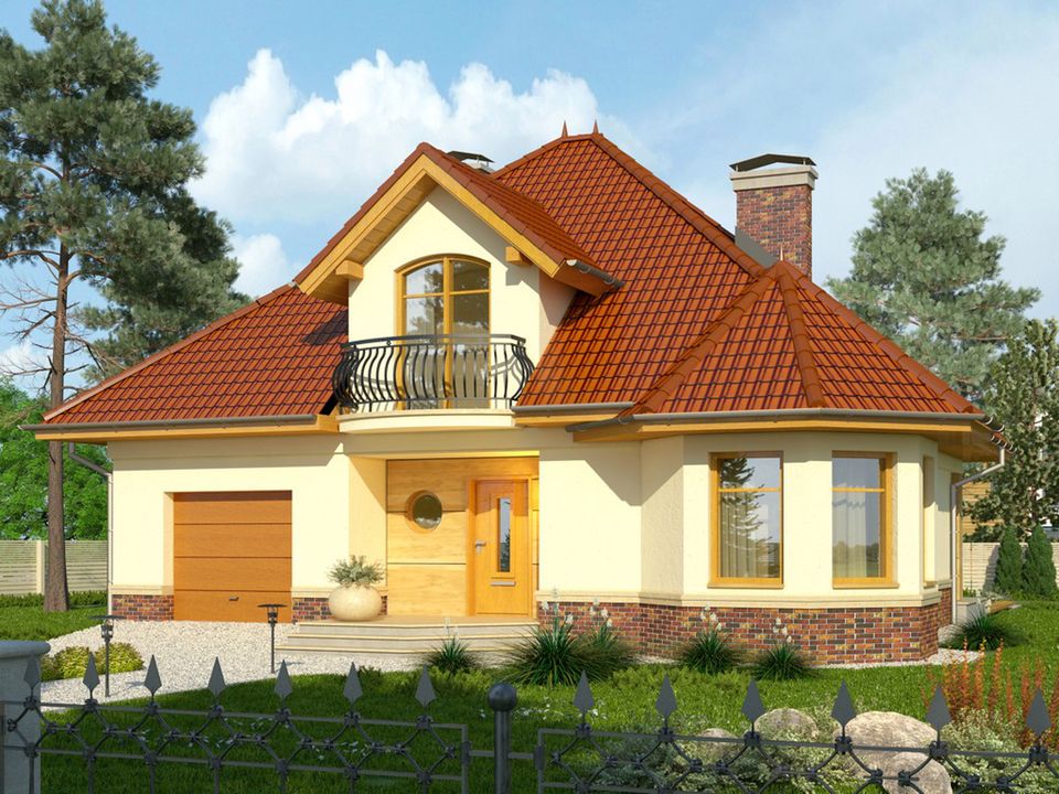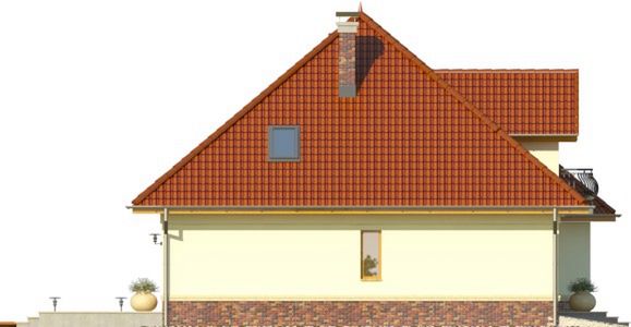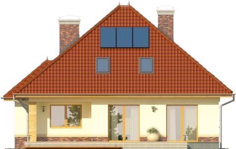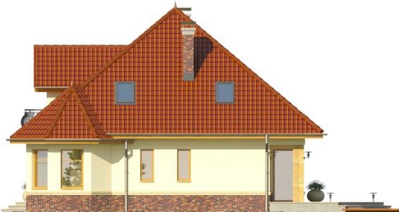 Graficzne opracowanie rzutów poglądowych widocznych na karcie projektu zostało wykonane przez Extradom.pl. Prezentowane przez Extradom.pl wizualizacje wykonane zostały przez autora projektu i należy poczytywać je jedynie za przykład i propozycję wykończenia, wizję architektoniczną autora projektu. Ostateczne wykończenie budynku może nastąpić na wiele sposobów. Szczegółowe rozwiązania zastosowane w oferowanej dokumentacji - w tym również ilość, lokalizacje i wygląd okien, drzwi, kominów - mogą w niewielkim stopniu różnić się od prezentowanej wizualizacji budynku.