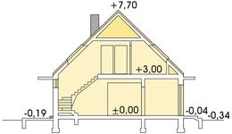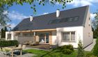 Graficzne opracowanie rzutów poglądowych widocznych na karcie projektu zostało wykonane przez Extradom.pl. Prezentowane przez Extradom.pl wizualizacje wykonane zostały przez autora projektu i należy poczytywać je jedynie za przykład i propozycję wykończenia, wizję architektoniczną autora projektu. Ostateczne wykończenie budynku może nastąpić na wiele sposobów. Szczegółowe rozwiązania zastosowane w oferowanej dokumentacji - w tym również ilość, lokalizacje i wygląd okien, drzwi, kominów - mogą w niewielkim stopniu różnić się od prezentowanej wizualizacji budynku.