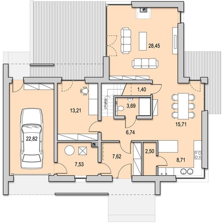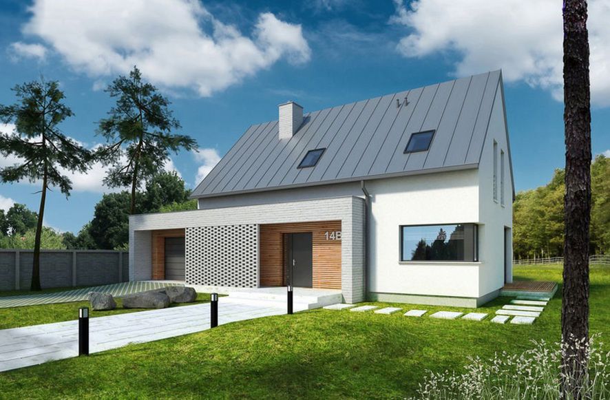 Graficzne opracowanie rzutów poglądowych widocznych na karcie projektu zostało wykonane przez Extradom.pl. Prezentowane przez Extradom.pl wizualizacje wykonane zostały przez autora projektu i należy poczytywać je jedynie za przykład i propozycję wykończenia, wizję architektoniczną autora projektu. Ostateczne wykończenie budynku może nastąpić na wiele sposobów. Szczegółowe rozwiązania zastosowane w oferowanej dokumentacji - w tym również ilość, lokalizacje i wygląd okien, drzwi, kominów - mogą w niewielkim stopniu różnić się od prezentowanej wizualizacji budynku.