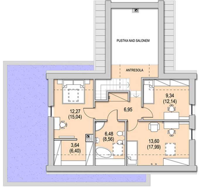 Wysokość ścianki kolankowej: 103 cm.