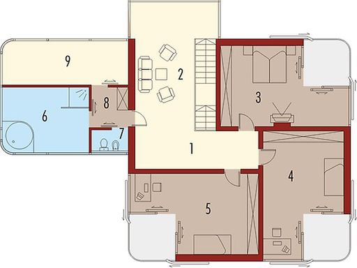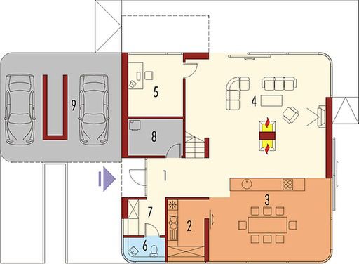 Graficzne opracowanie rzutów poglądowych widocznych na karcie projektu zostało wykonane przez Extradom.pl. Prezentowane przez Extradom.pl wizualizacje wykonane zostały przez autora projektu i należy poczytywać je jedynie za przykład i propozycję wykończenia, wizję architektoniczną autora projektu. Ostateczne wykończenie budynku może nastąpić na wiele sposobów. Szczegółowe rozwiązania zastosowane w oferowanej dokumentacji - w tym również ilość, lokalizacje i wygląd okien, drzwi, kominów - mogą w niewielkim stopniu różnić się od prezentowanej wizualizacji budynku.