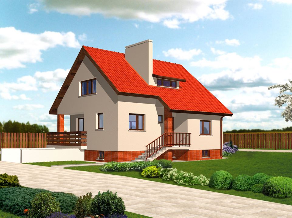 Graficzne opracowanie rzutów poglądowych widocznych na karcie projektu zostało wykonane przez Extradom.pl. Prezentowane przez Extradom.pl wizualizacje wykonane zostały przez autora projektu i należy poczytywać je jedynie za przykład i propozycję wykończenia, wizję architektoniczną autora projektu. Ostateczne wykończenie budynku może nastąpić na wiele sposobów. Szczegółowe rozwiązania zastosowane w oferowanej dokumentacji - w tym również ilość, lokalizacje i wygląd okien, drzwi, kominów - mogą w niewielkim stopniu różnić się od prezentowanej wizualizacji budynku.