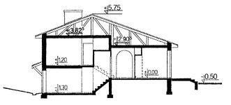 Ściany: dwuwarstwowe, ceramiczne. Stropy: gęstożebrowe. Dach: o konstrukcji drewnianej, dwuspadowy o nachyleniu połaci 20°, kryty dachówką blaszaną lub bitumiczną.