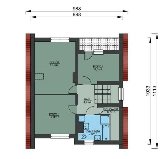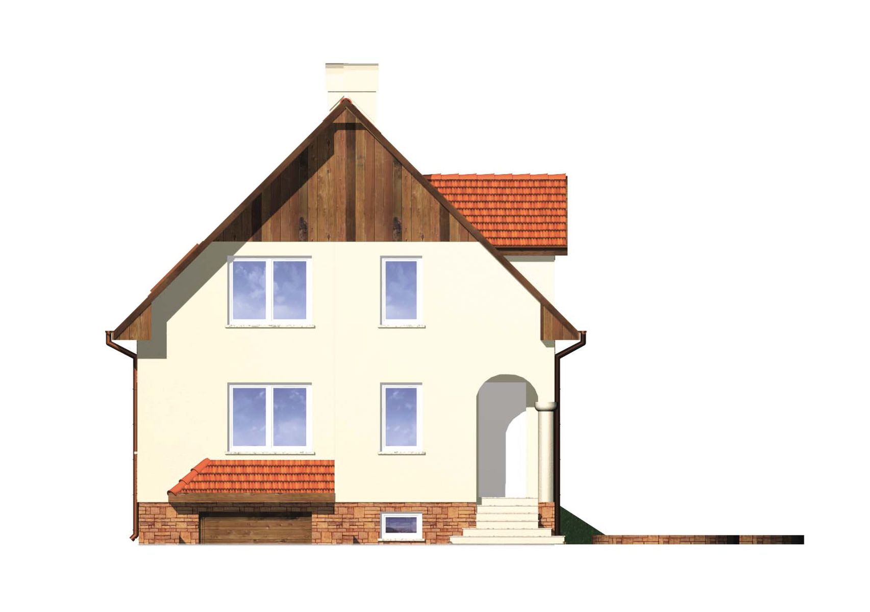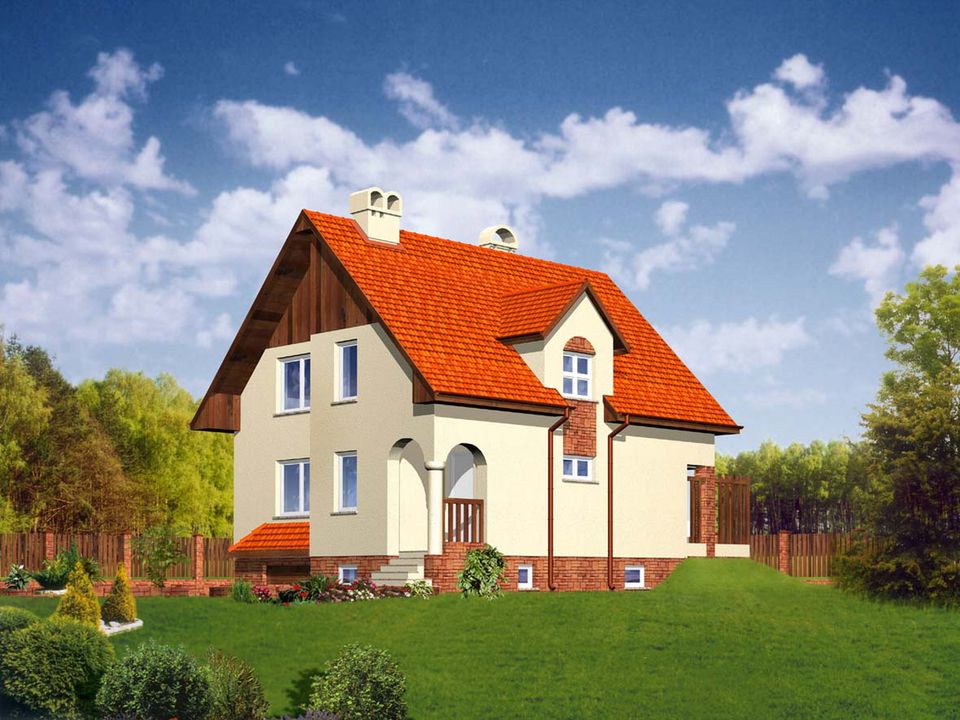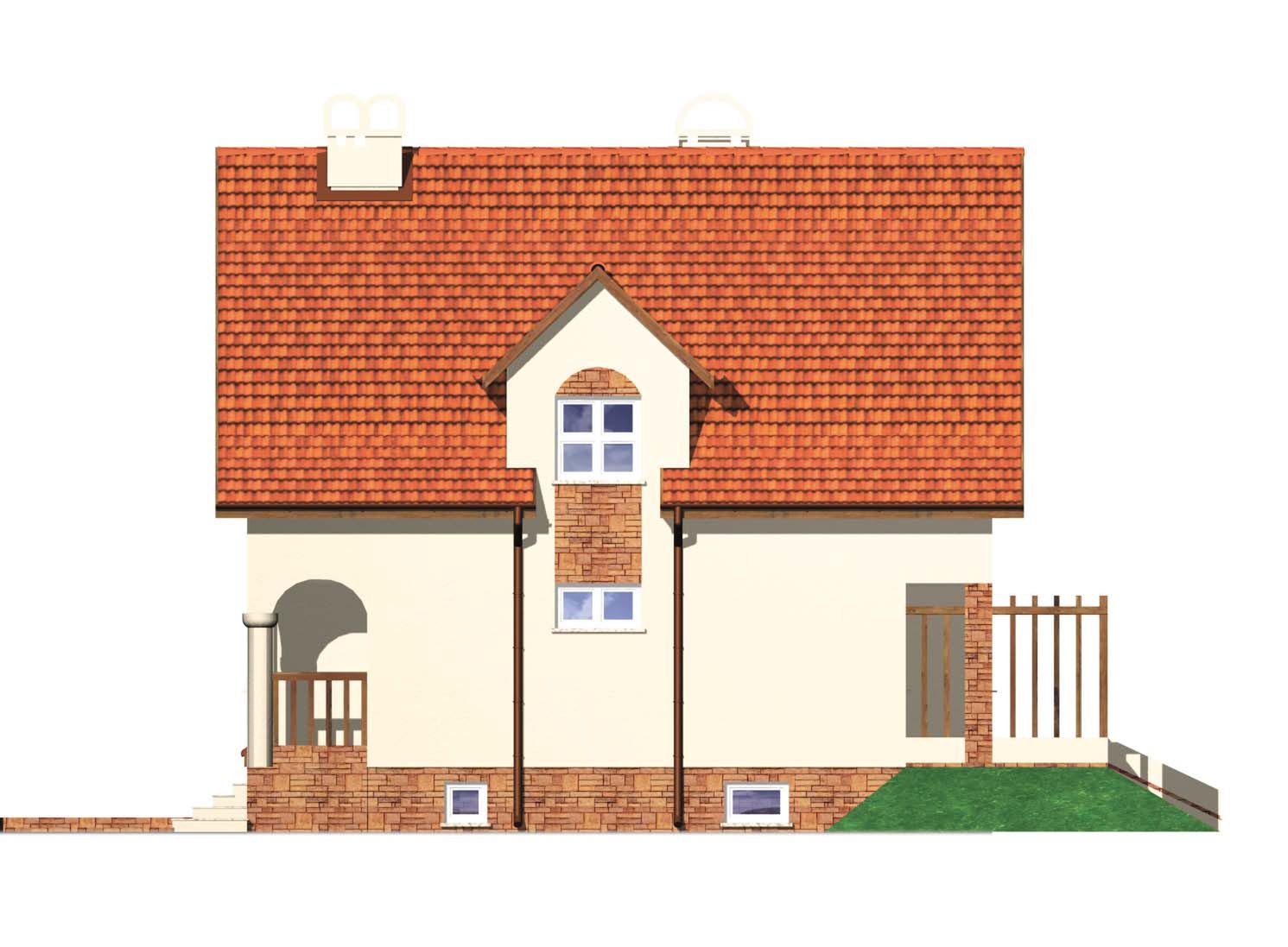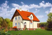 Graficzne opracowanie rzutów poglądowych widocznych na karcie projektu zostało wykonane przez Extradom.pl. Prezentowane przez Extradom.pl wizualizacje wykonane zostały przez autora projektu i należy poczytywać je jedynie za przykład i propozycję wykończenia, wizję architektoniczną autora projektu. Ostateczne wykończenie budynku może nastąpić na wiele sposobów. Szczegółowe rozwiązania zastosowane w oferowanej dokumentacji - w tym również ilość, lokalizacje i wygląd okien, drzwi, kominów - mogą w niewielkim stopniu różnić się od prezentowanej wizualizacji budynku.