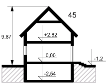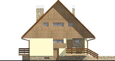 Graficzne opracowanie rzutów poglądowych widocznych na karcie projektu zostało wykonane przez Extradom.pl. Prezentowane przez Extradom.pl wizualizacje wykonane zostały przez autora projektu i należy poczytywać je jedynie za przykład i propozycję wykończenia, wizję architektoniczną autora projektu. Ostateczne wykończenie budynku może nastąpić na wiele sposobów. Szczegółowe rozwiązania zastosowane w oferowanej dokumentacji - w tym również ilość, lokalizacje i wygląd okien, drzwi, kominów - mogą w niewielkim stopniu różnić się od prezentowanej wizualizacji budynku.