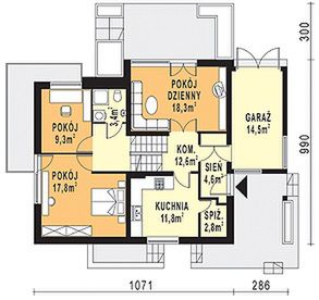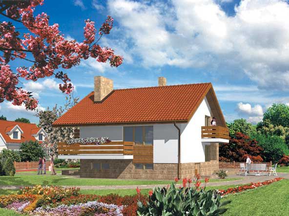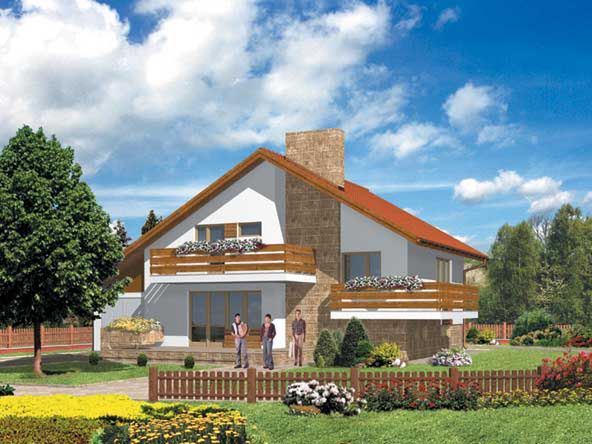 Graficzne opracowanie rzutów poglądowych widocznych na karcie projektu zostało wykonane przez Extradom.pl. Prezentowane przez Extradom.pl wizualizacje wykonane zostały przez autora projektu i należy poczytywać je jedynie za przykład i propozycję wykończenia, wizję architektoniczną autora projektu. Ostateczne wykończenie budynku może nastąpić na wiele sposobów. Szczegółowe rozwiązania zastosowane w oferowanej dokumentacji - w tym również ilość, lokalizacje i wygląd okien, drzwi, kominów - mogą w niewielkim stopniu różnić się od prezentowanej wizualizacji budynku.