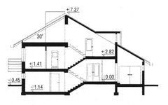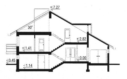 Ściany zewnętrzne: warstwowe gr. 38,0 cm, pustak Porotherm + styropian. Strop: żelbetowy. Schody: żelbetowe. Dach: dwuspadowy o nachyleniu 30 stopni, więźba drewniana, krycie blachą fałdową. Poziom kalenicy: 7,72 m od terenu. Dodatkowe informacje: ogrzewanie: kocioł gazowy jednofunkcyjny z zasobnikiem c.w.u..