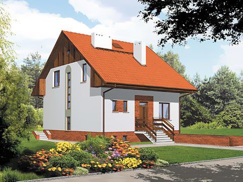 Graficzne opracowanie rzutów poglądowych widocznych na karcie projektu zostało wykonane przez Extradom.pl. Prezentowane przez Extradom.pl wizualizacje wykonane zostały przez autora projektu i należy poczytywać je jedynie za przykład i propozycję wykończenia, wizję architektoniczną autora projektu. Ostateczne wykończenie budynku może nastąpić na wiele sposobów. Szczegółowe rozwiązania zastosowane w oferowanej dokumentacji - w tym również ilość, lokalizacje i wygląd okien, drzwi, kominów - mogą w niewielkim stopniu różnić się od prezentowanej wizualizacji budynku.