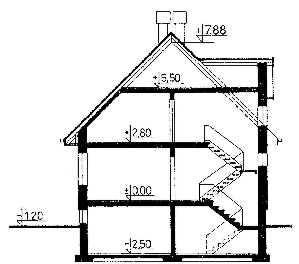 Ściany: warstwowe, ceramiczne. Stropy: gęstożebrowe. Dach: o konstrukcji drewnianej, kryty dachówką ceramiczną.