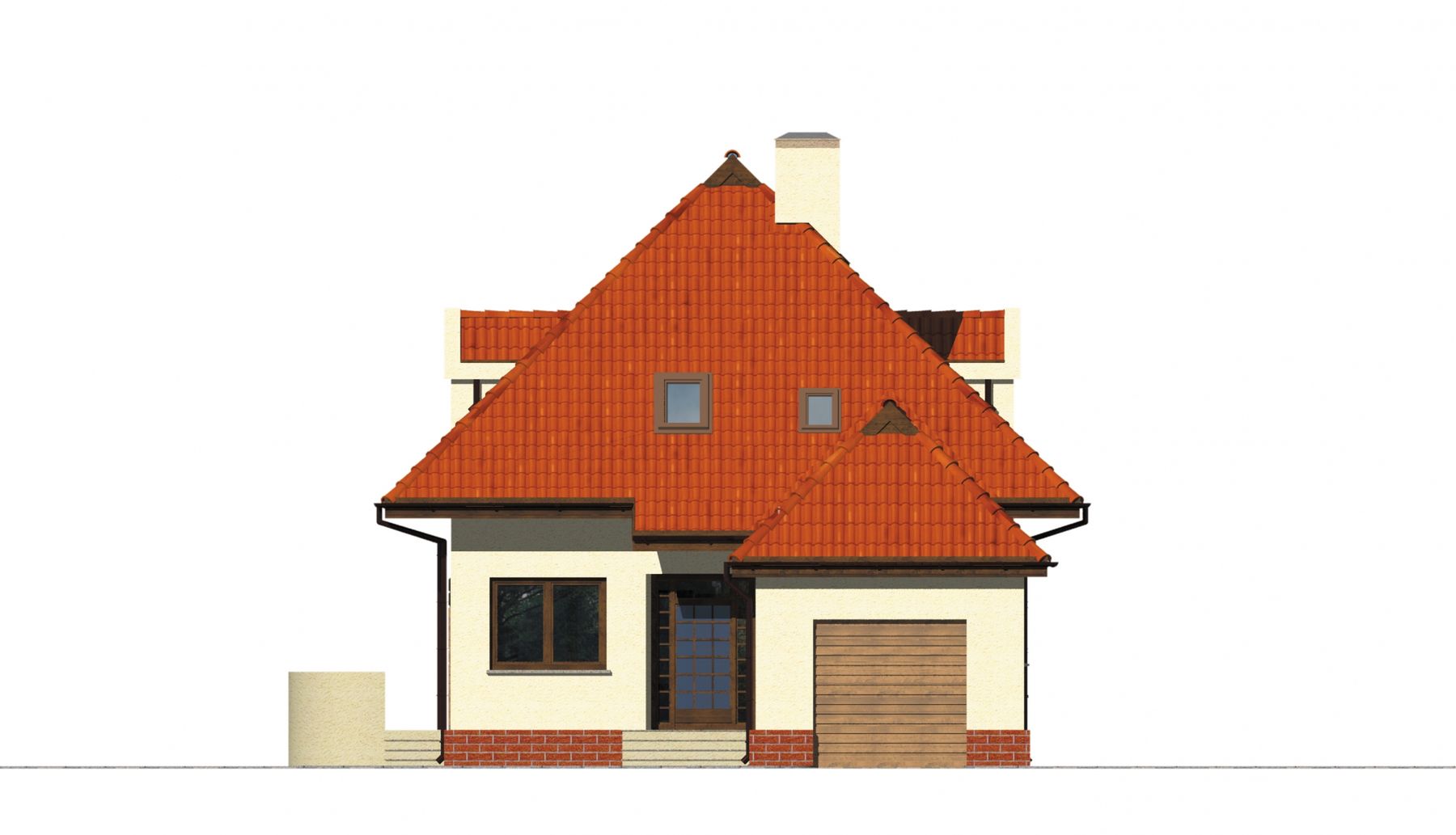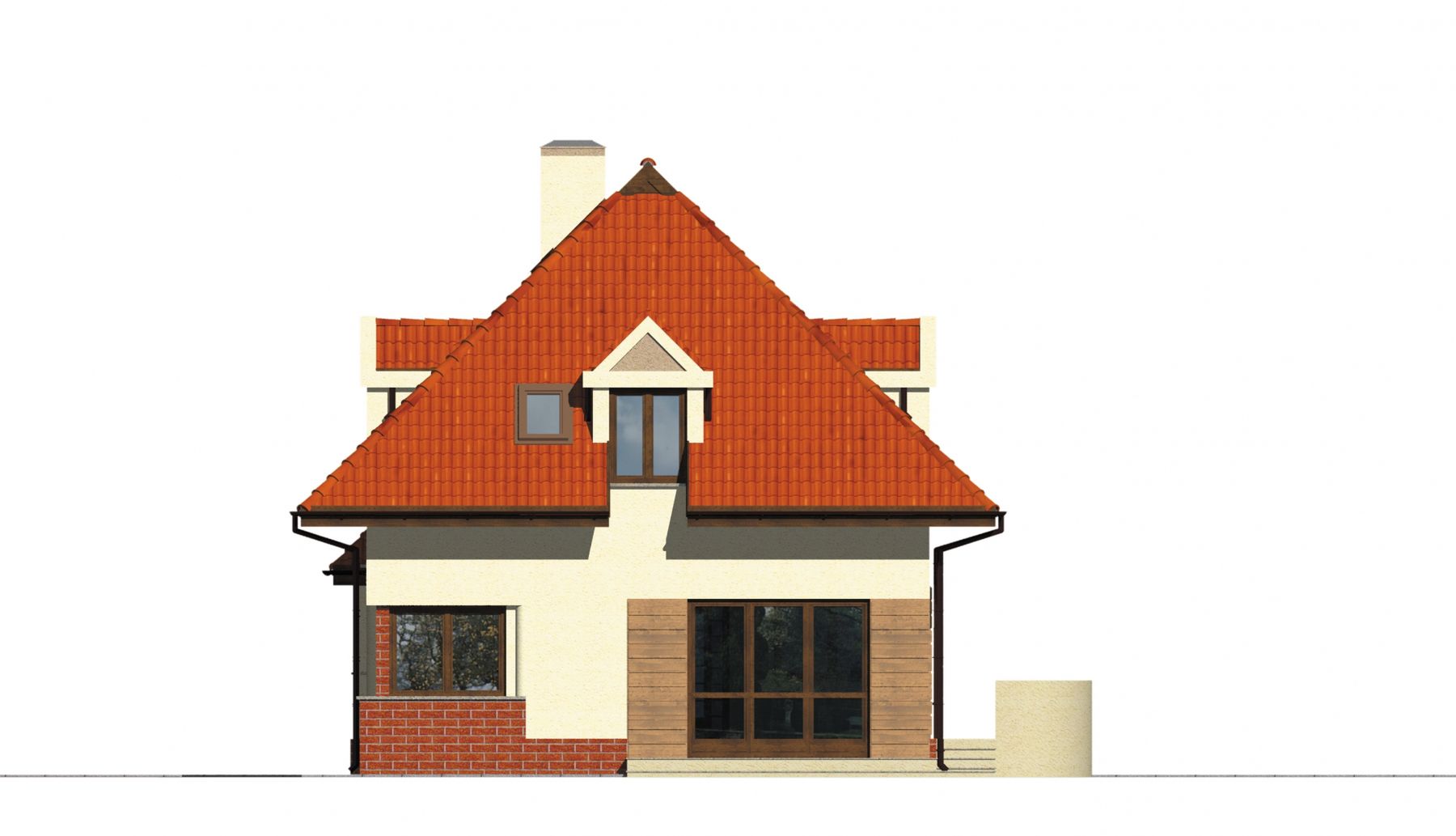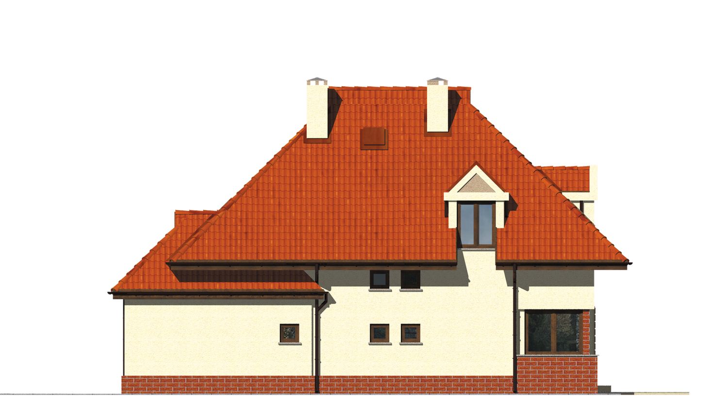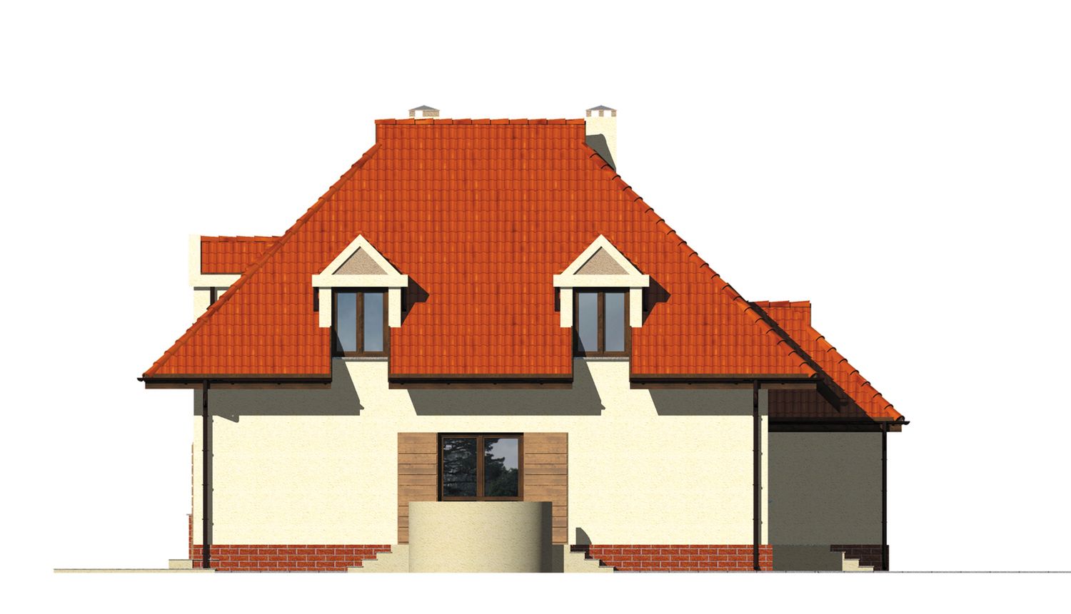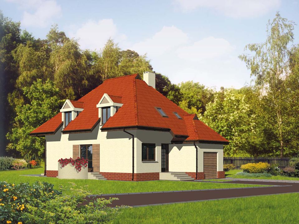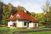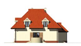 Graficzne opracowanie rzutów poglądowych widocznych na karcie projektu zostało wykonane przez Extradom.pl. Prezentowane przez Extradom.pl wizualizacje wykonane zostały przez autora projektu i należy poczytywać je jedynie za przykład i propozycję wykończenia, wizję architektoniczną autora projektu. Ostateczne wykończenie budynku może nastąpić na wiele sposobów. Szczegółowe rozwiązania zastosowane w oferowanej dokumentacji - w tym również ilość, lokalizacje i wygląd okien, drzwi, kominów - mogą w niewielkim stopniu różnić się od prezentowanej wizualizacji budynku.