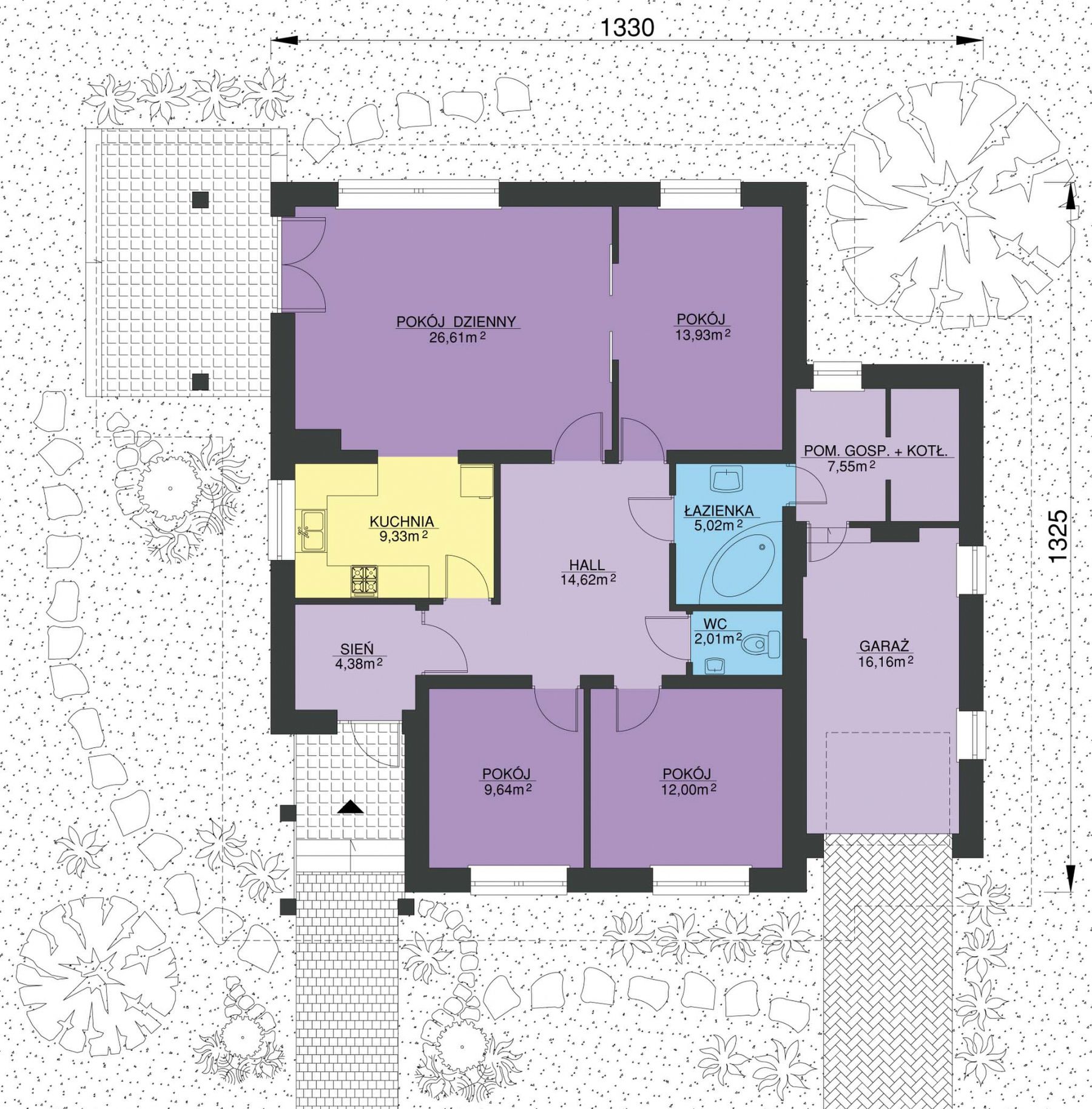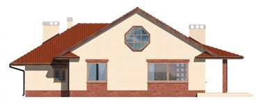 Graficzne opracowanie rzutów poglądowych widocznych na karcie projektu zostało wykonane przez Extradom.pl. Prezentowane przez Extradom.pl wizualizacje wykonane zostały przez autora projektu i należy poczytywać je jedynie za przykład i propozycję wykończenia, wizję architektoniczną autora projektu. Ostateczne wykończenie budynku może nastąpić na wiele sposobów. Szczegółowe rozwiązania zastosowane w oferowanej dokumentacji - w tym również ilość, lokalizacje i wygląd okien, drzwi, kominów - mogą w niewielkim stopniu różnić się od prezentowanej wizualizacji budynku.