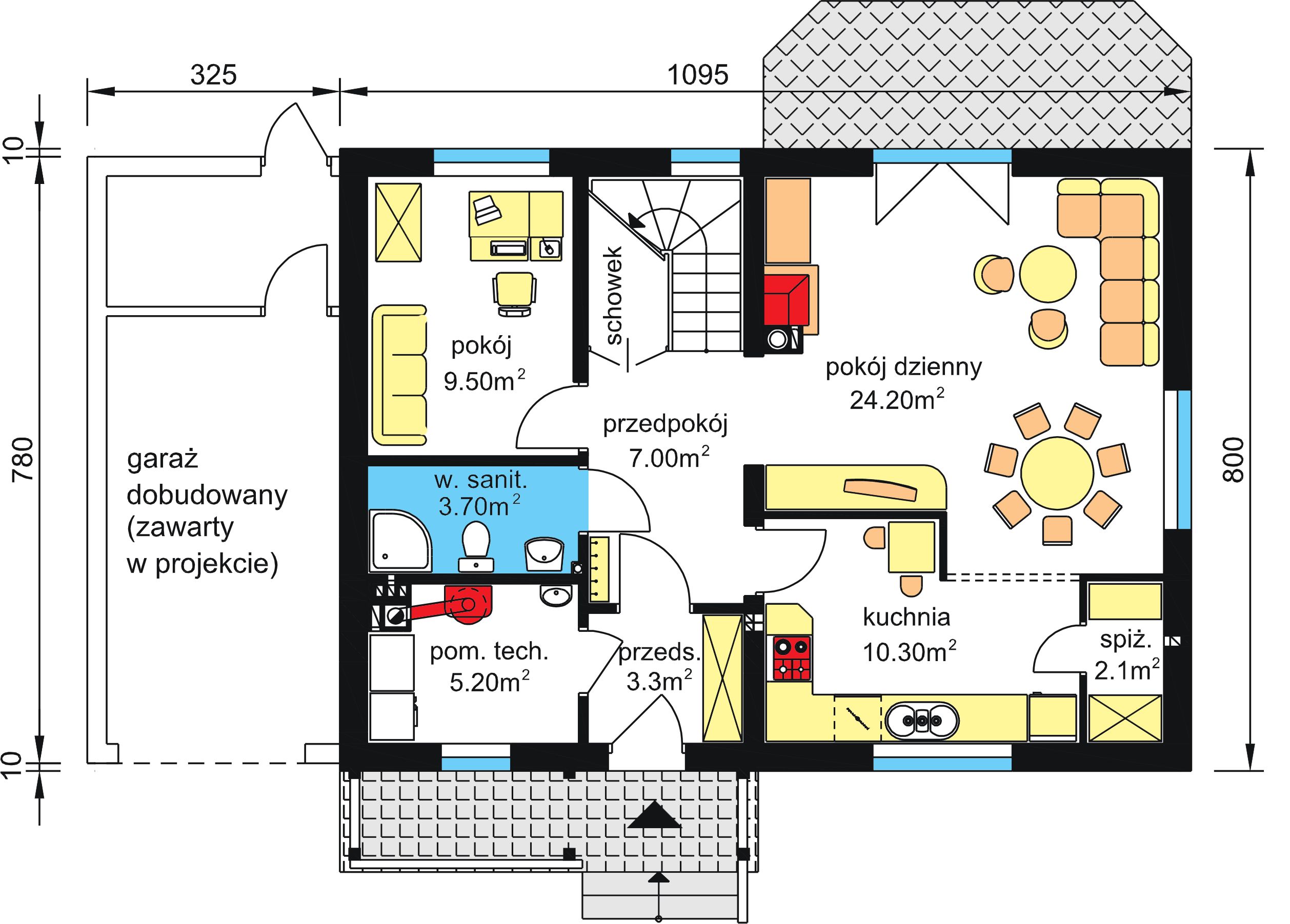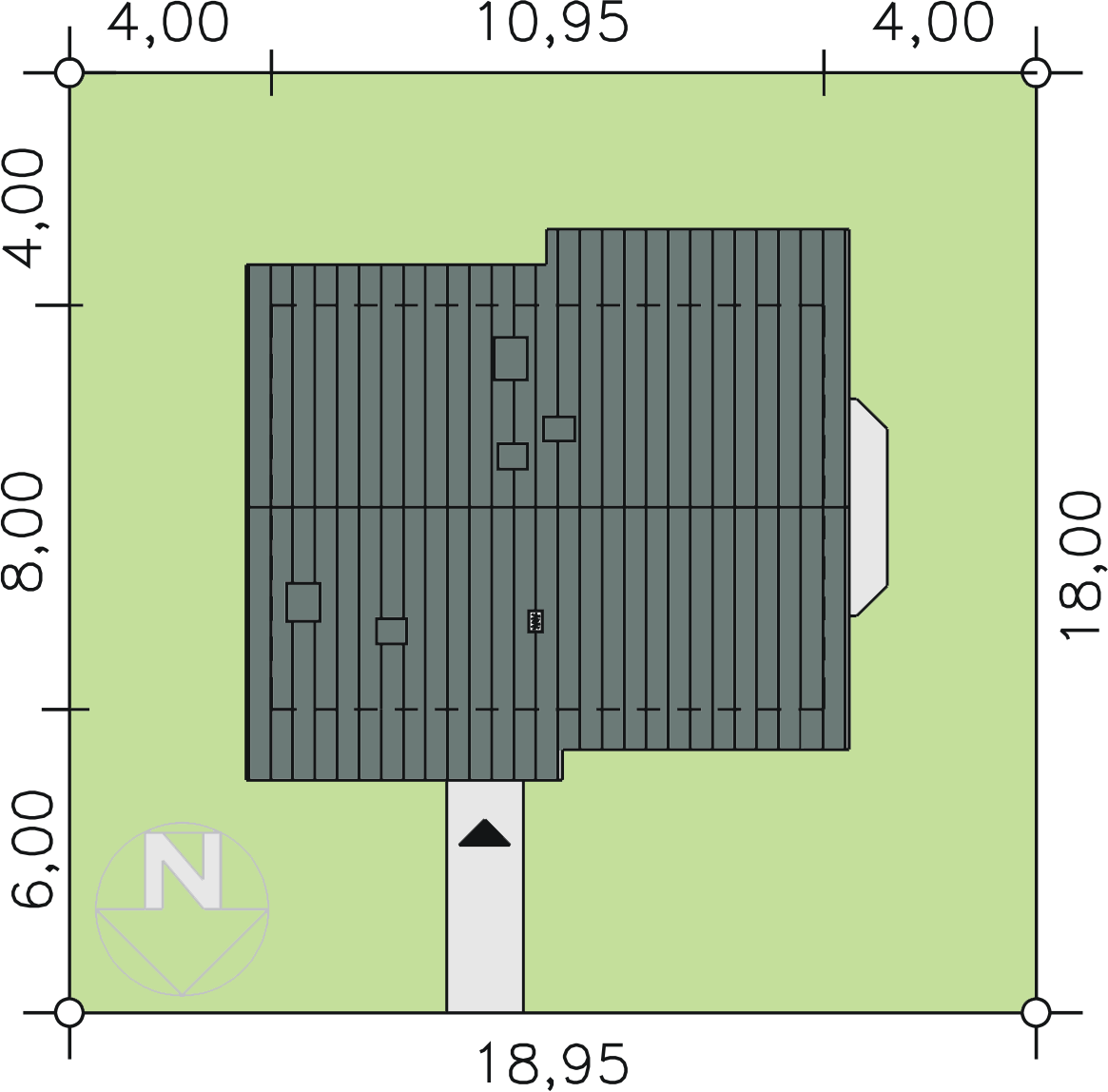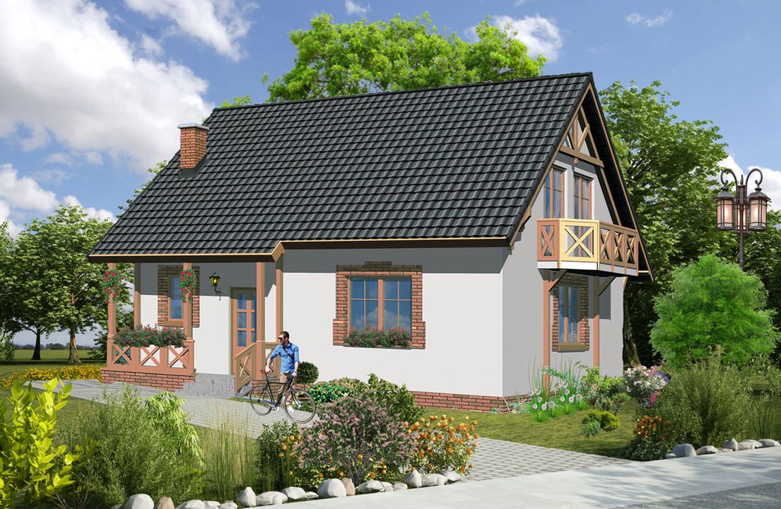 Graficzne opracowanie rzutów poglądowych widocznych na karcie projektu zostało wykonane przez Extradom.pl. Prezentowane przez Extradom.pl wizualizacje wykonane zostały przez autora projektu i należy poczytywać je jedynie za przykład i propozycję wykończenia, wizję architektoniczną autora projektu. Ostateczne wykończenie budynku może nastąpić na wiele sposobów. Szczegółowe rozwiązania zastosowane w oferowanej dokumentacji - w tym również ilość, lokalizacje i wygląd okien, drzwi, kominów - mogą w niewielkim stopniu różnić się od prezentowanej wizualizacji budynku.