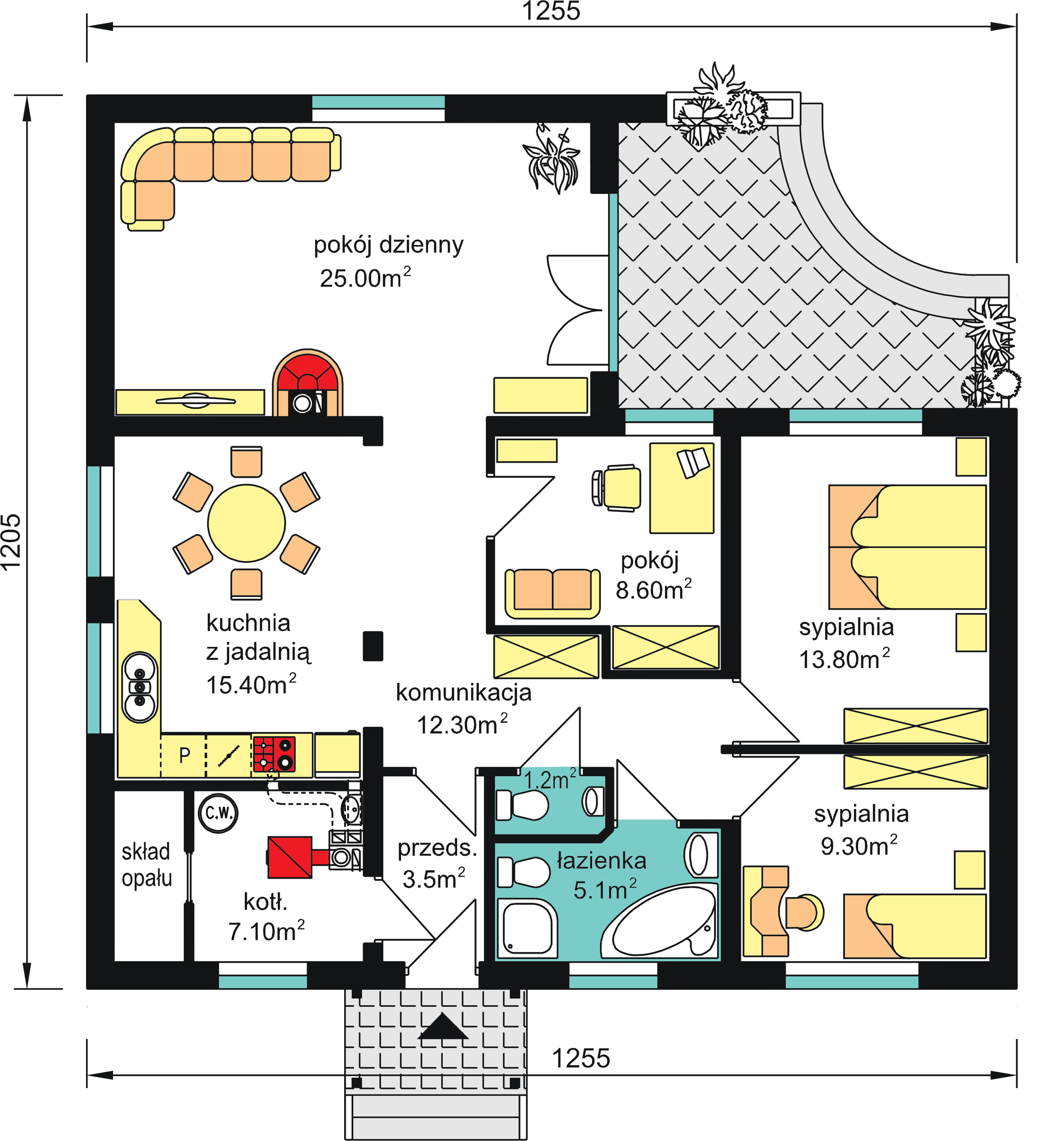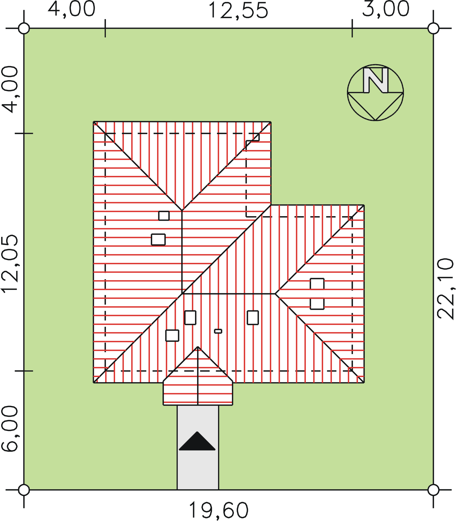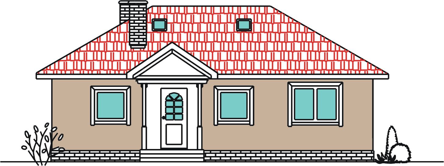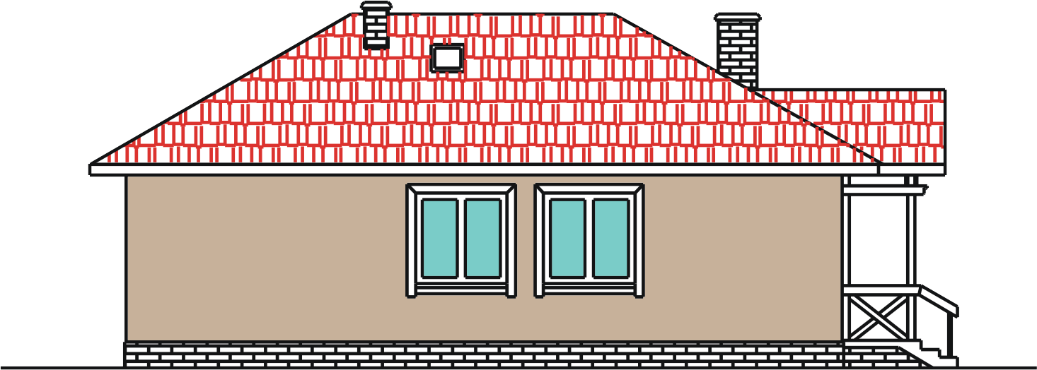 Graficzne opracowanie rzutów poglądowych widocznych na karcie projektu zostało wykonane przez Extradom.pl. Prezentowane przez Extradom.pl wizualizacje wykonane zostały przez autora projektu i należy poczytywać je jedynie za przykład i propozycję wykończenia, wizję architektoniczną autora projektu. Ostateczne wykończenie budynku może nastąpić na wiele sposobów. Szczegółowe rozwiązania zastosowane w oferowanej dokumentacji - w tym również ilość, lokalizacje i wygląd okien, drzwi, kominów - mogą w niewielkim stopniu różnić się od prezentowanej wizualizacji budynku.