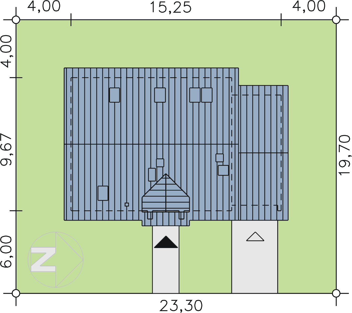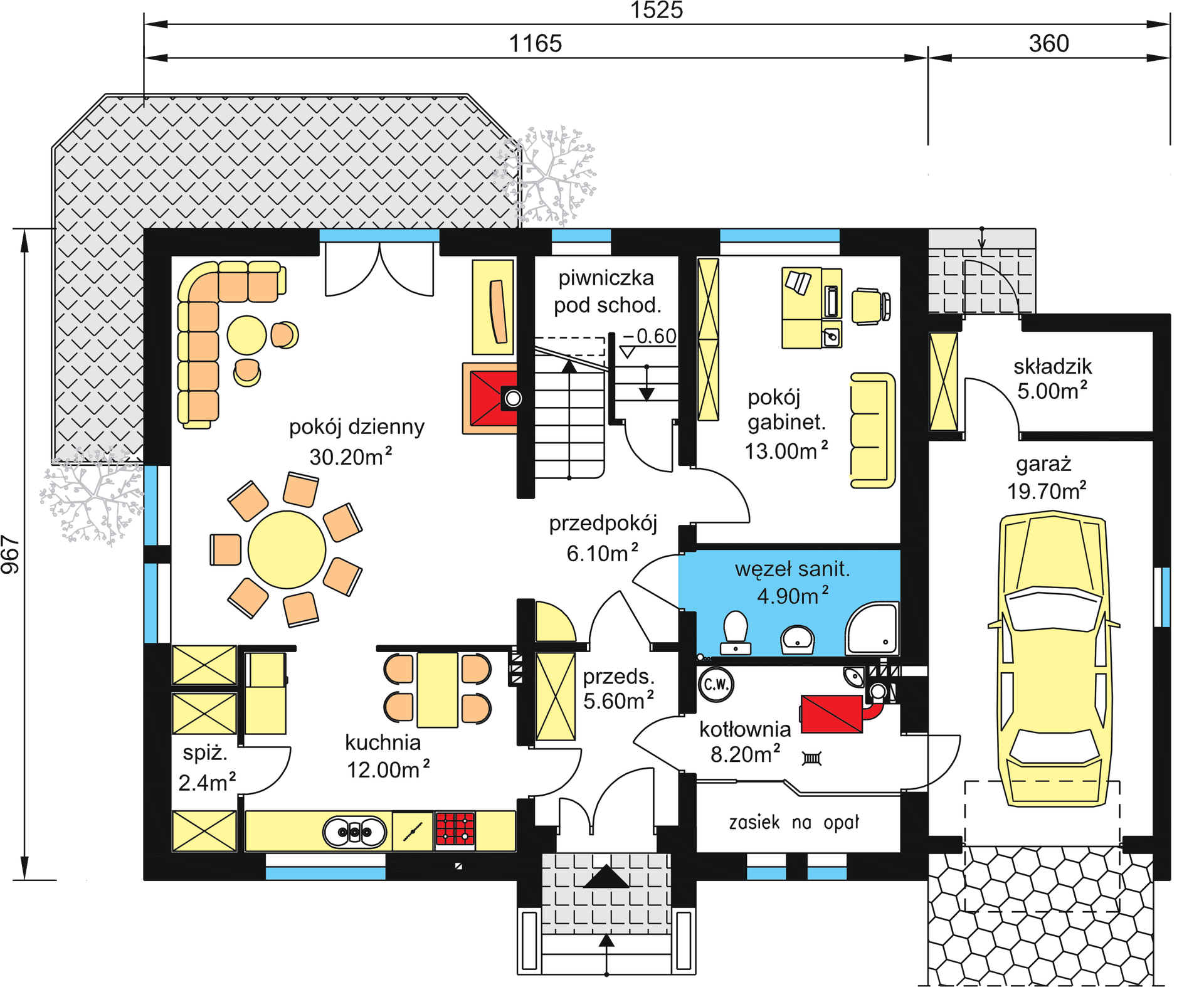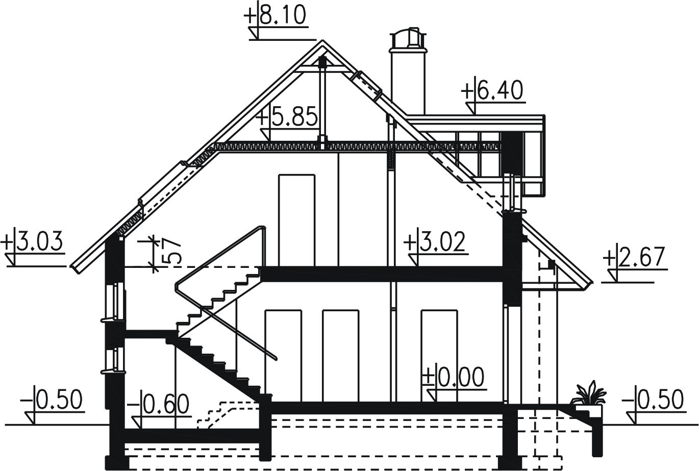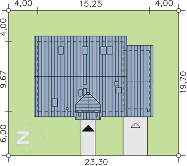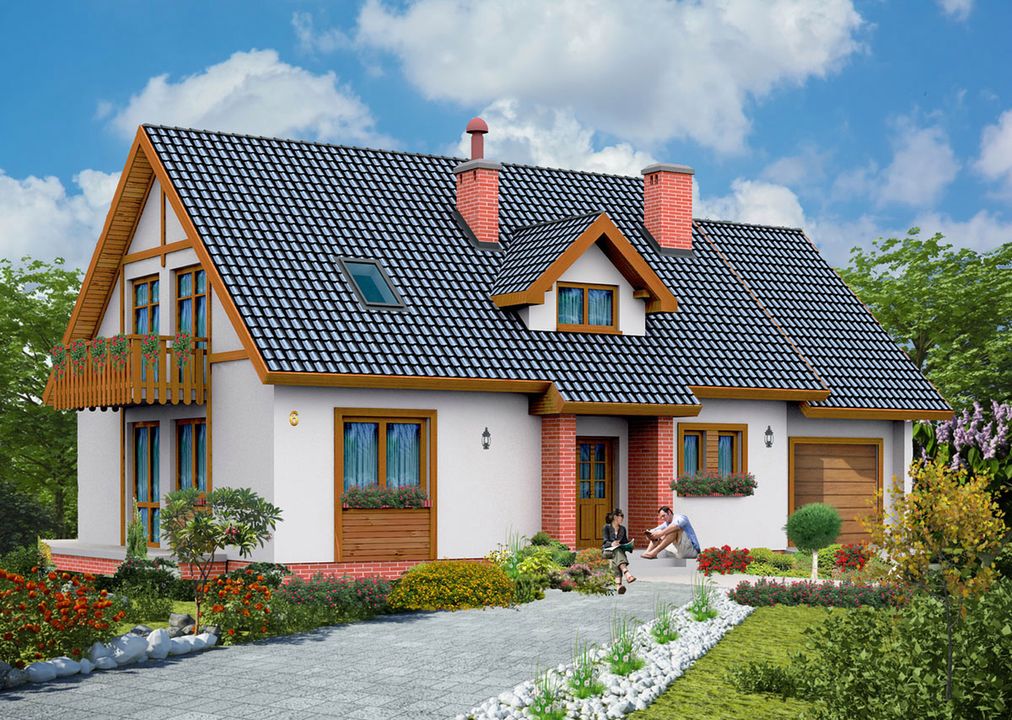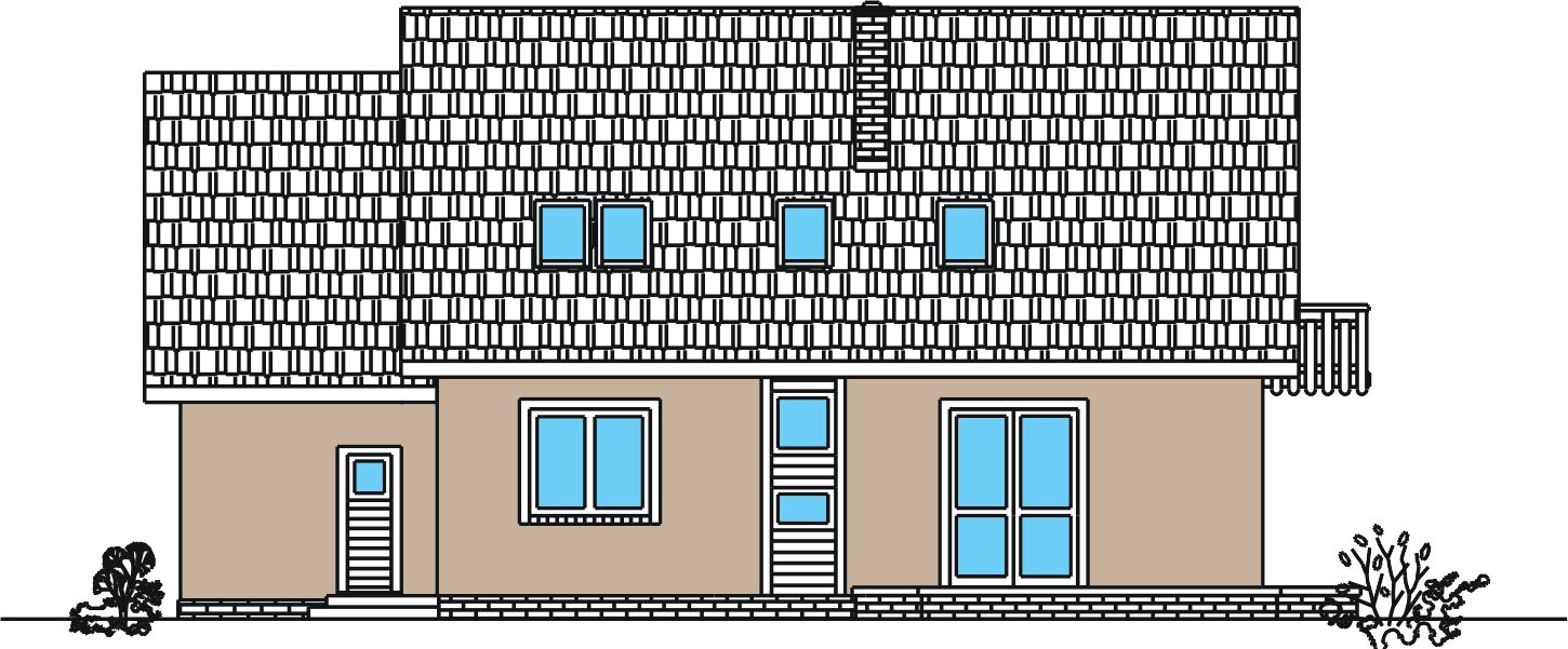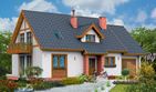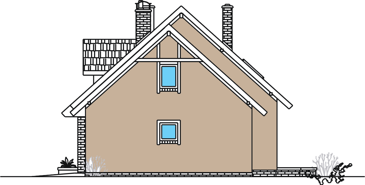 Graficzne opracowanie rzutów poglądowych widocznych na karcie projektu zostało wykonane przez Extradom.pl. Prezentowane przez Extradom.pl wizualizacje wykonane zostały przez autora projektu i należy poczytywać je jedynie za przykład i propozycję wykończenia, wizję architektoniczną autora projektu. Ostateczne wykończenie budynku może nastąpić na wiele sposobów. Szczegółowe rozwiązania zastosowane w oferowanej dokumentacji - w tym również ilość, lokalizacje i wygląd okien, drzwi, kominów - mogą w niewielkim stopniu różnić się od prezentowanej wizualizacji budynku.