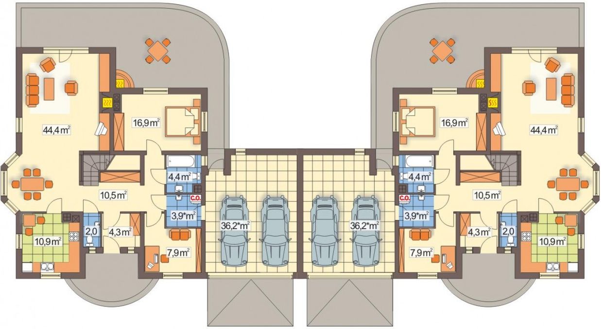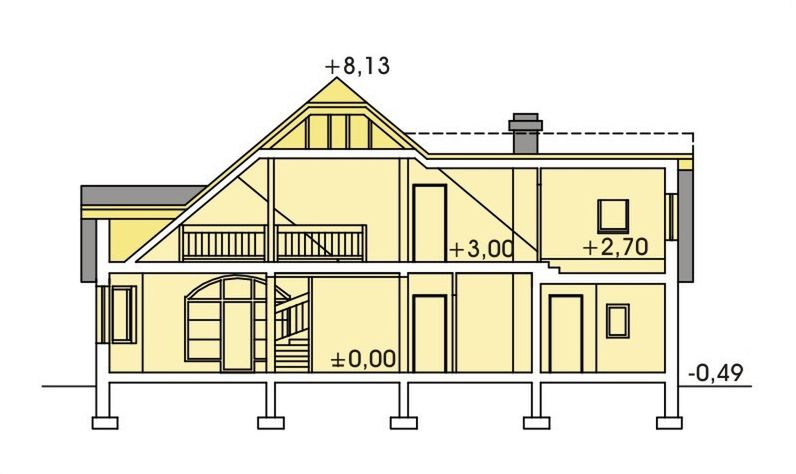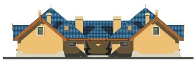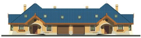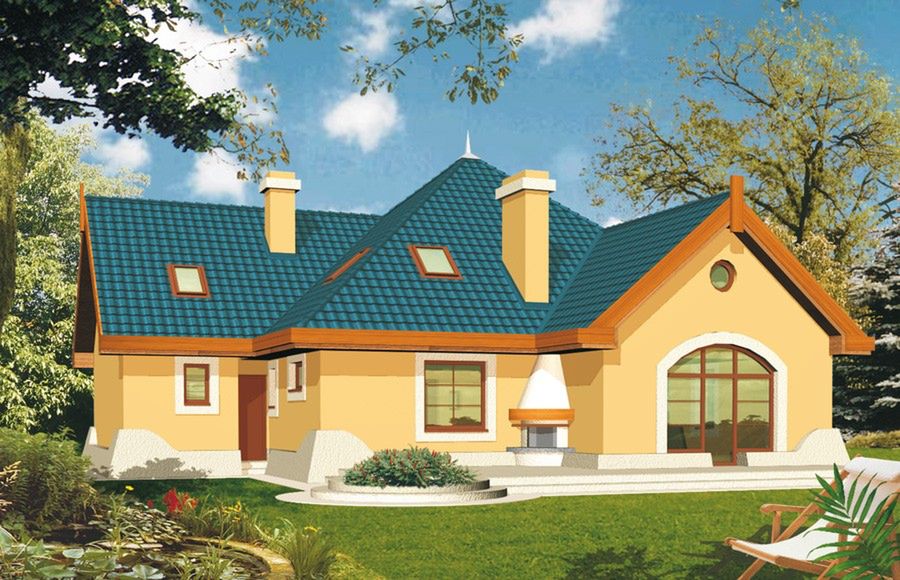 Graficzne opracowanie rzutów poglądowych widocznych na karcie projektu zostało wykonane przez Extradom.pl. Prezentowane przez Extradom.pl wizualizacje wykonane zostały przez autora projektu i należy poczytywać je jedynie za przykład i propozycję wykończenia, wizję architektoniczną autora projektu. Ostateczne wykończenie budynku może nastąpić na wiele sposobów. Szczegółowe rozwiązania zastosowane w oferowanej dokumentacji - w tym również ilość, lokalizacje i wygląd okien, drzwi, kominów - mogą w niewielkim stopniu różnić się od prezentowanej wizualizacji budynku.