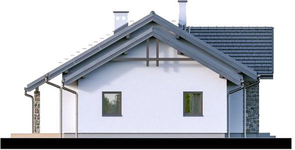Graficzne opracowanie rzutów poglądowych widocznych na karcie projektu zostało wykonane przez Extradom.pl. Prezentowane przez Extradom.pl wizualizacje wykonane zostały przez autora projektu i należy poczytywać je jedynie za przykład i propozycję wykończenia, wizję architektoniczną autora projektu. Ostateczne wykończenie budynku może nastąpić na wiele sposobów. Szczegółowe rozwiązania zastosowane w oferowanej dokumentacji - w tym również ilość, lokalizacje i wygląd okien, drzwi, kominów - mogą w niewielkim stopniu różnić się od prezentowanej wizualizacji budynku.