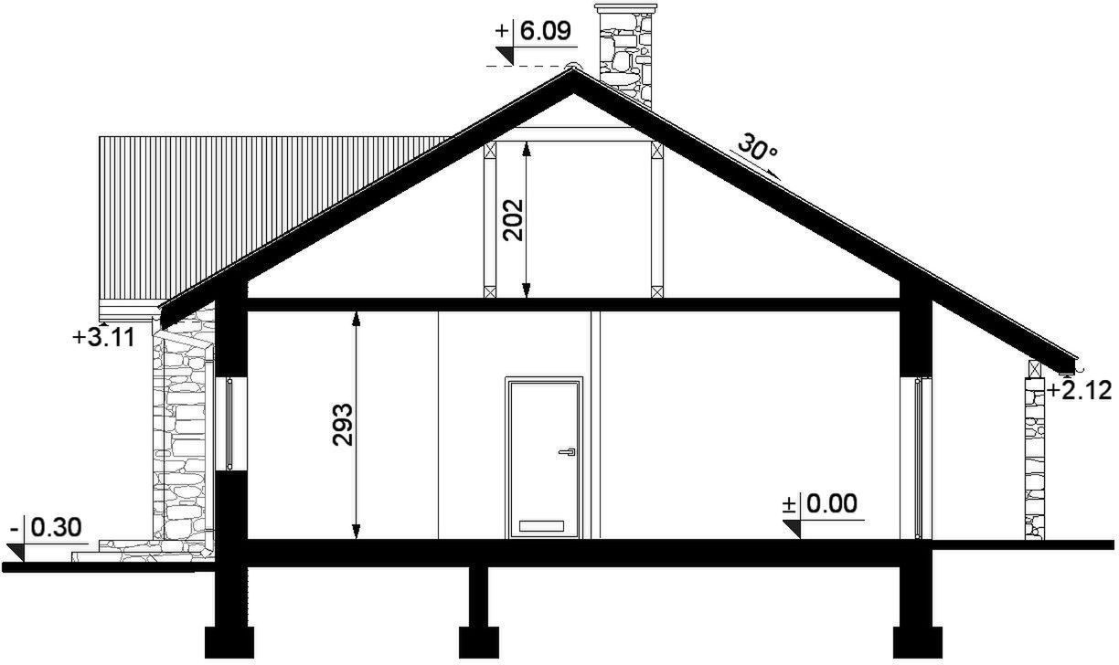 Technologia tradycyjna, ławy i ściany fundamentowe betonowe, ściany murowane z pustaków z betonu komórkowego grubości 24 cm, ocieplony styropianem. Płyta żelbetowa nad poziomem parteru. Dach dwuspadowy o konstrukcji drewnianej płatwiowo-kleszczowy, pokryty blachodachówką, tynk zewnętrzny. Wykończenie: Ściany zewnętrzne wykończone tynkiem silikonowym w kolorze jasnym. Cokół budynku wykonany tynkiem mozaikowym. Wymiary bram garażowych: 240 x 230.