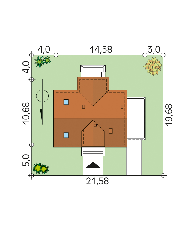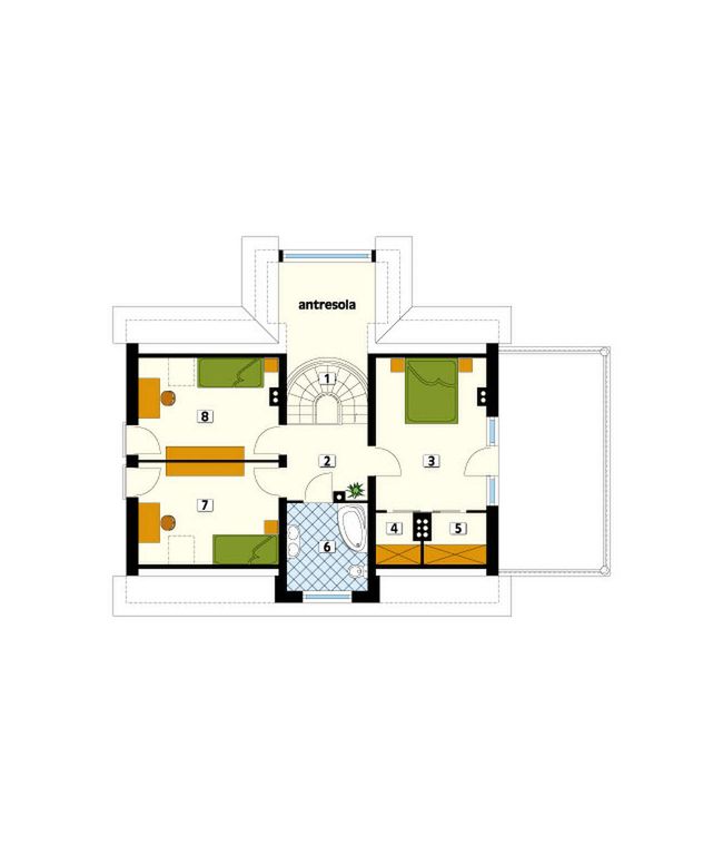 Graficzne opracowanie rzutów poglądowych widocznych na karcie projektu zostało wykonane przez Extradom.pl. Prezentowane przez Extradom.pl wizualizacje wykonane zostały przez autora projektu i należy poczytywać je jedynie za przykład i propozycję wykończenia, wizję architektoniczną autora projektu. Ostateczne wykończenie budynku może nastąpić na wiele sposobów. Szczegółowe rozwiązania zastosowane w oferowanej dokumentacji - w tym również ilość, lokalizacje i wygląd okien, drzwi, kominów - mogą w niewielkim stopniu różnić się od prezentowanej wizualizacji budynku.