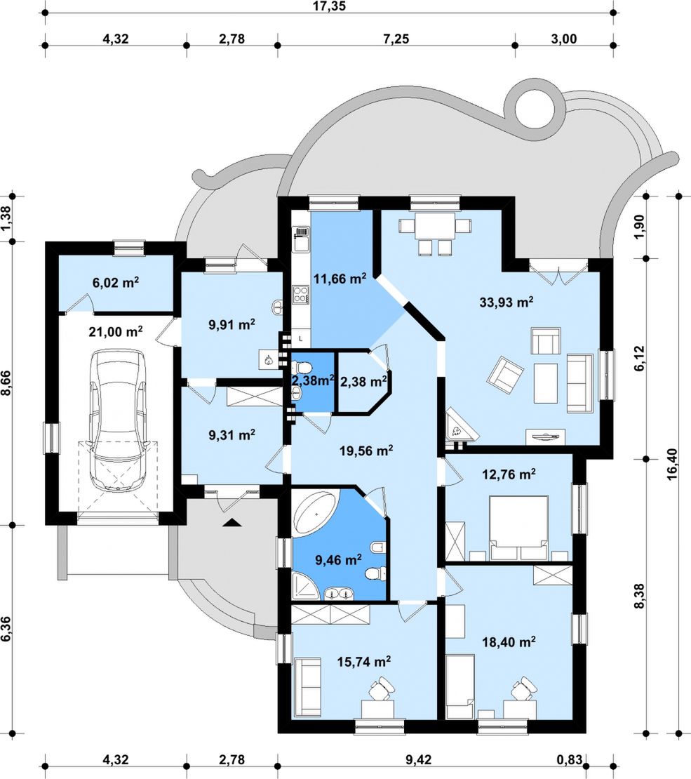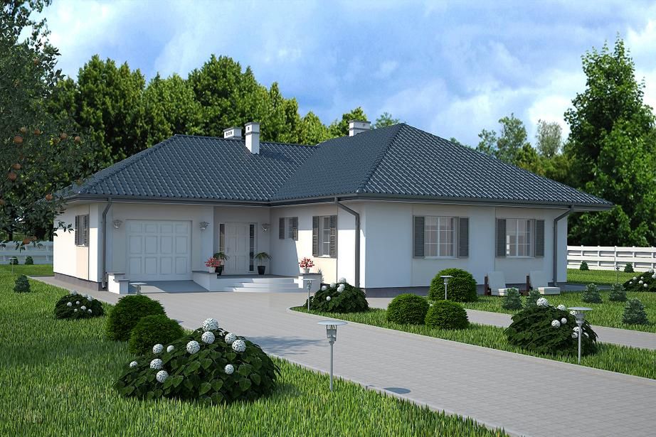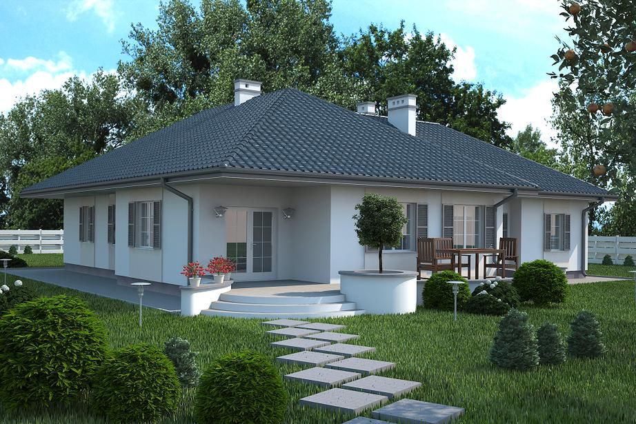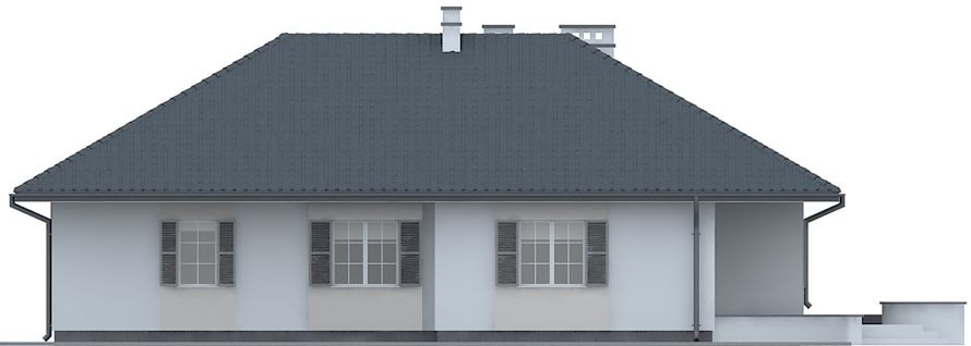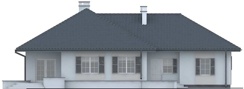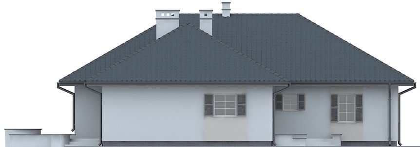 Graficzne opracowanie rzutów poglądowych widocznych na karcie projektu zostało wykonane przez Extradom.pl. Prezentowane przez Extradom.pl wizualizacje wykonane zostały przez autora projektu i należy poczytywać je jedynie za przykład i propozycję wykończenia, wizję architektoniczną autora projektu. Ostateczne wykończenie budynku może nastąpić na wiele sposobów. Szczegółowe rozwiązania zastosowane w oferowanej dokumentacji - w tym również ilość, lokalizacje i wygląd okien, drzwi, kominów - mogą w niewielkim stopniu różnić się od prezentowanej wizualizacji budynku.