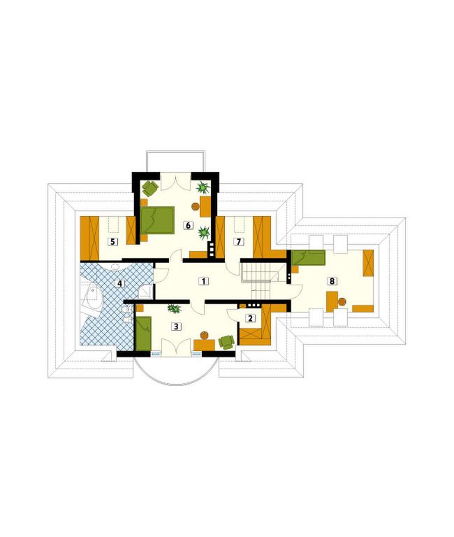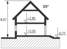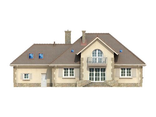 Graficzne opracowanie rzutów poglądowych widocznych na karcie projektu zostało wykonane przez Extradom.pl. Prezentowane przez Extradom.pl wizualizacje wykonane zostały przez autora projektu i należy poczytywać je jedynie za przykład i propozycję wykończenia, wizję architektoniczną autora projektu. Ostateczne wykończenie budynku może nastąpić na wiele sposobów. Szczegółowe rozwiązania zastosowane w oferowanej dokumentacji - w tym również ilość, lokalizacje i wygląd okien, drzwi, kominów - mogą w niewielkim stopniu różnić się od prezentowanej wizualizacji budynku.