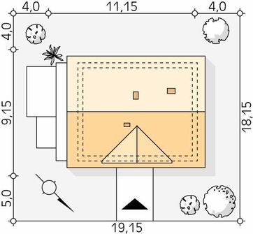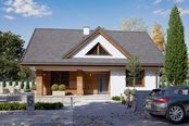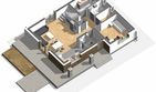 Graficzne opracowanie rzutów poglądowych widocznych na karcie projektu zostało wykonane przez Extradom.pl. Prezentowane przez Extradom.pl wizualizacje wykonane zostały przez autora projektu i należy poczytywać je jedynie za przykład i propozycję wykończenia, wizję architektoniczną autora projektu. Ostateczne wykończenie budynku może nastąpić na wiele sposobów. Szczegółowe rozwiązania zastosowane w oferowanej dokumentacji - w tym również ilość, lokalizacje i wygląd okien, drzwi, kominów - mogą w niewielkim stopniu różnić się od prezentowanej wizualizacji budynku.